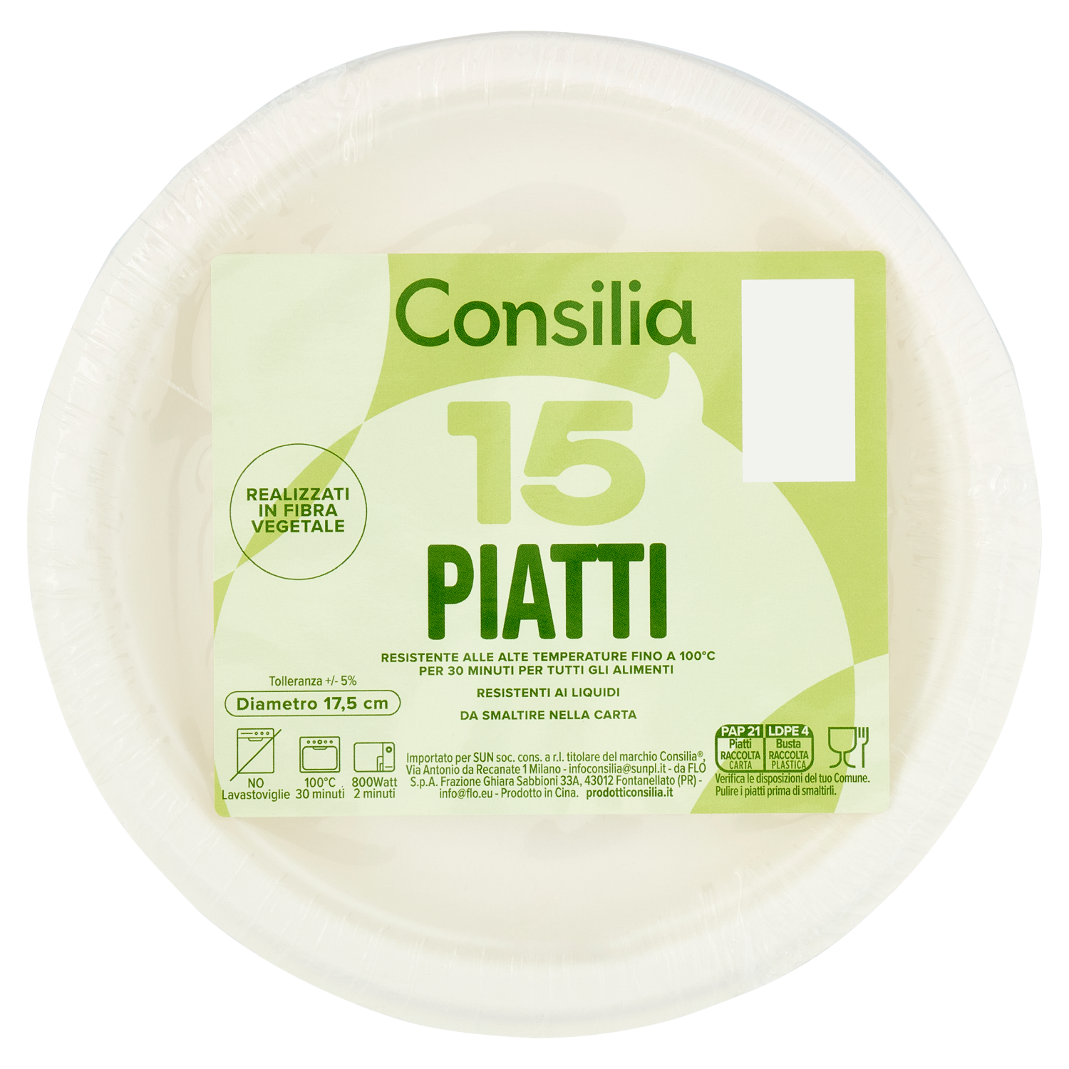Consilia Piatti Piani in Fibra Vegetale Biodegradabili Compostabili 17,5 cm 15 pezzi