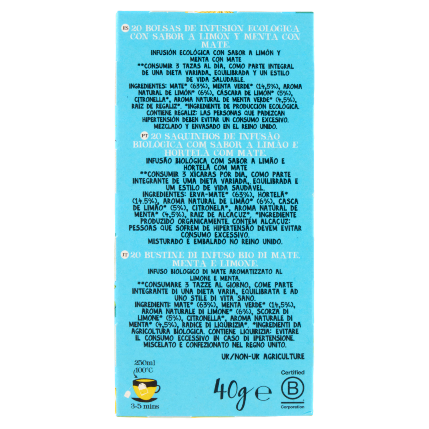 CUPPER My Slim Mate Infuso Bio di Mate Menta e Limone, 20 Bustine 40 g