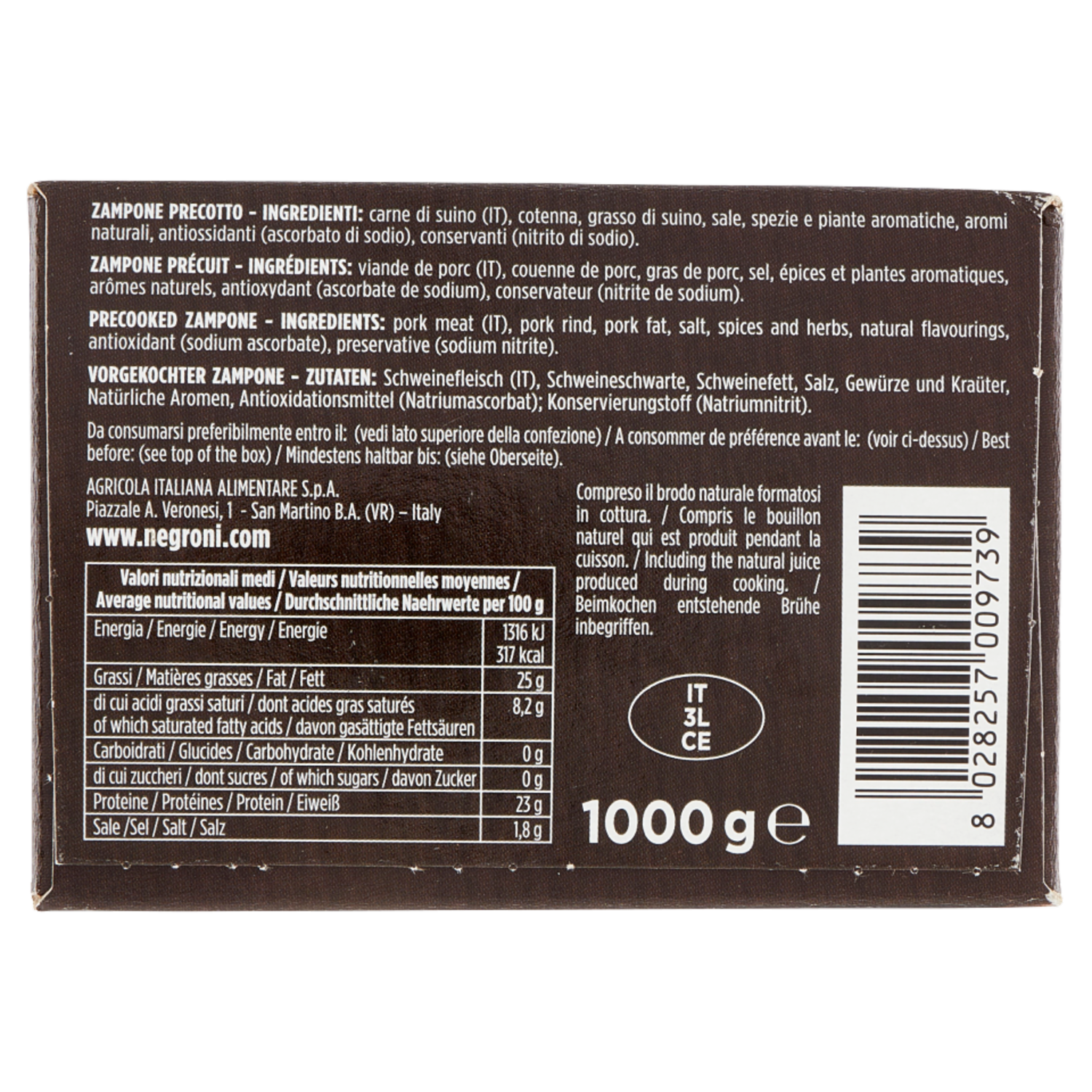 Negroni Zampone 100% Italiano 1 Kg