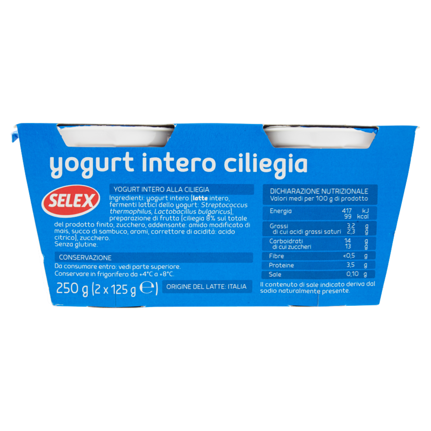 Selex Yogurt Intero Ciliegia con Frutta in Pezzi 2x125 g