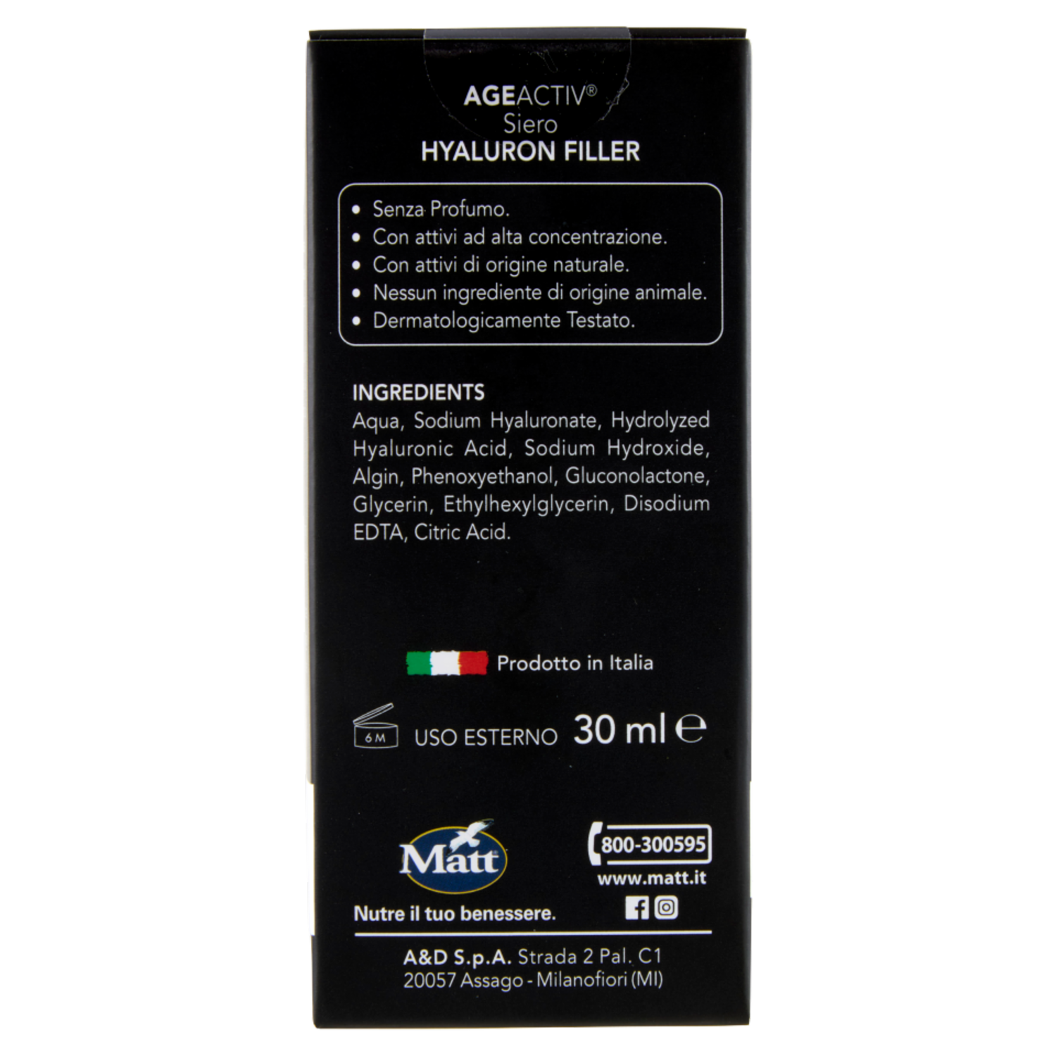Matt Age Activ Hyaluron Filler Siero Viso e Collo Acido Ialuronico Puro 3P 30 ml