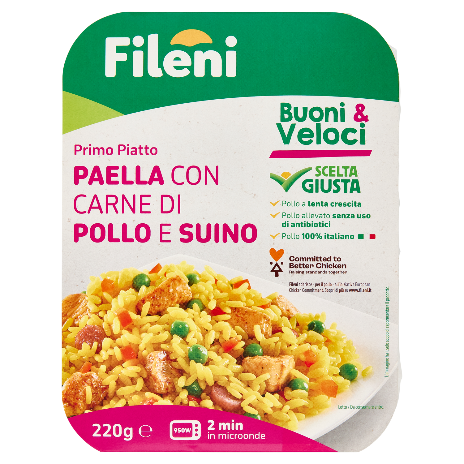 Fileni Buoni & Veloci Primo Piatto Paella con Carne di Pollo e Suino 220 g