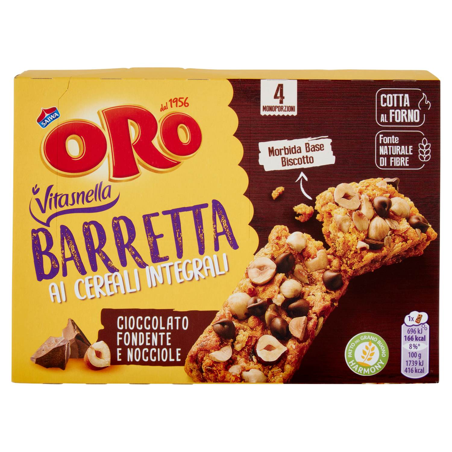 Oro Saiwa Vitasnella Barrette ai cereali integrali con cioccolato fondente e nocciole - 4 x 40 g