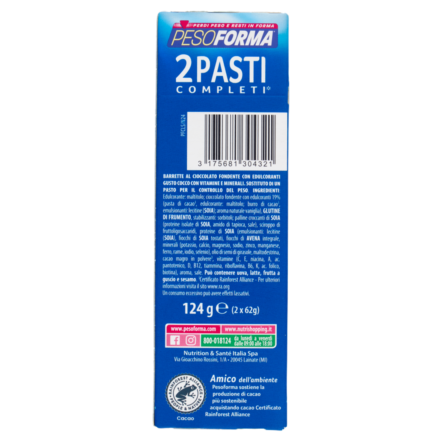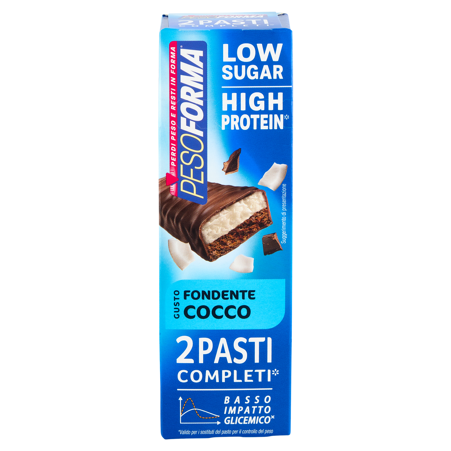 Pesoforma Barrette 2 Pasti Low Sugar Fondente Cocco, High Protein, basso impatto glicemico - 2x62g