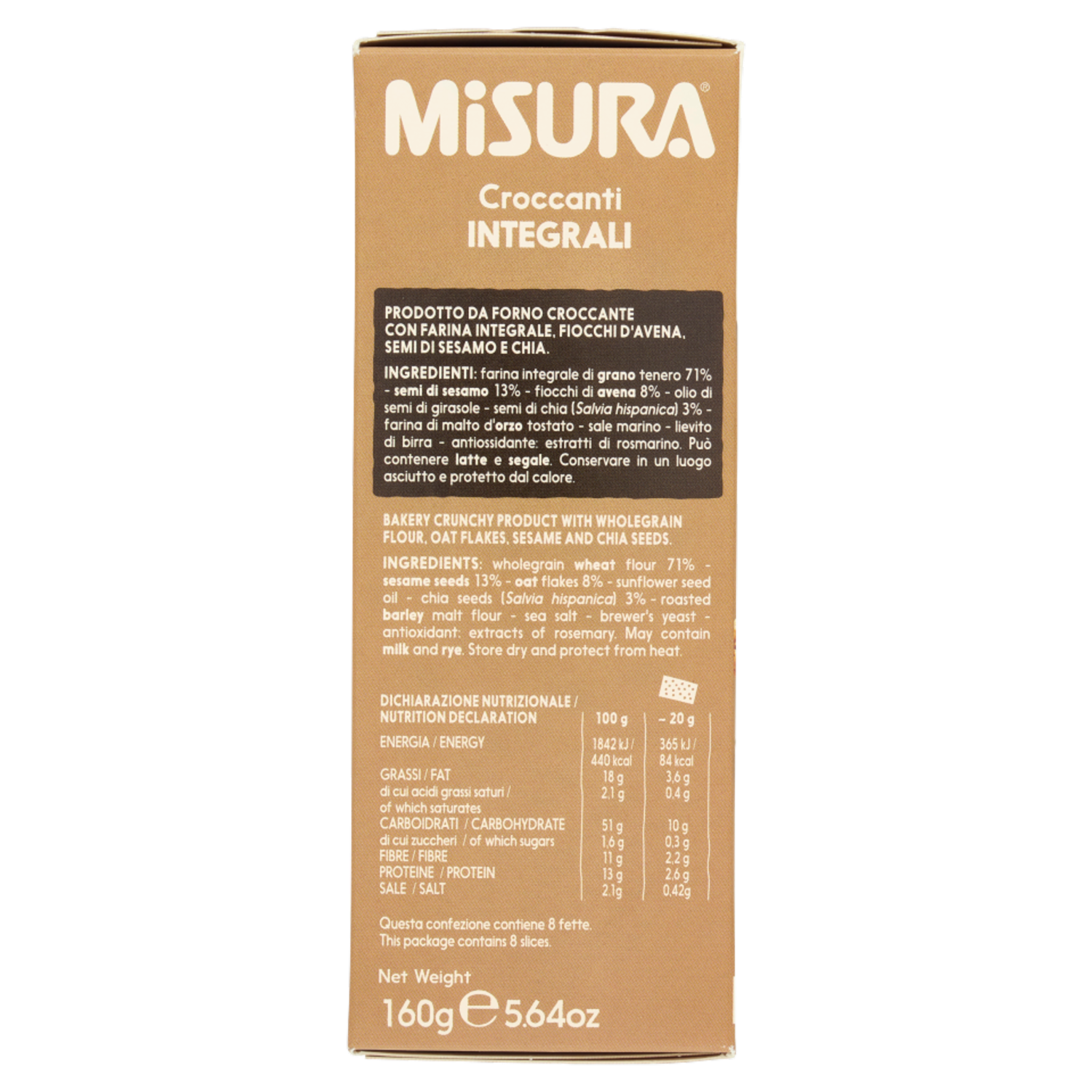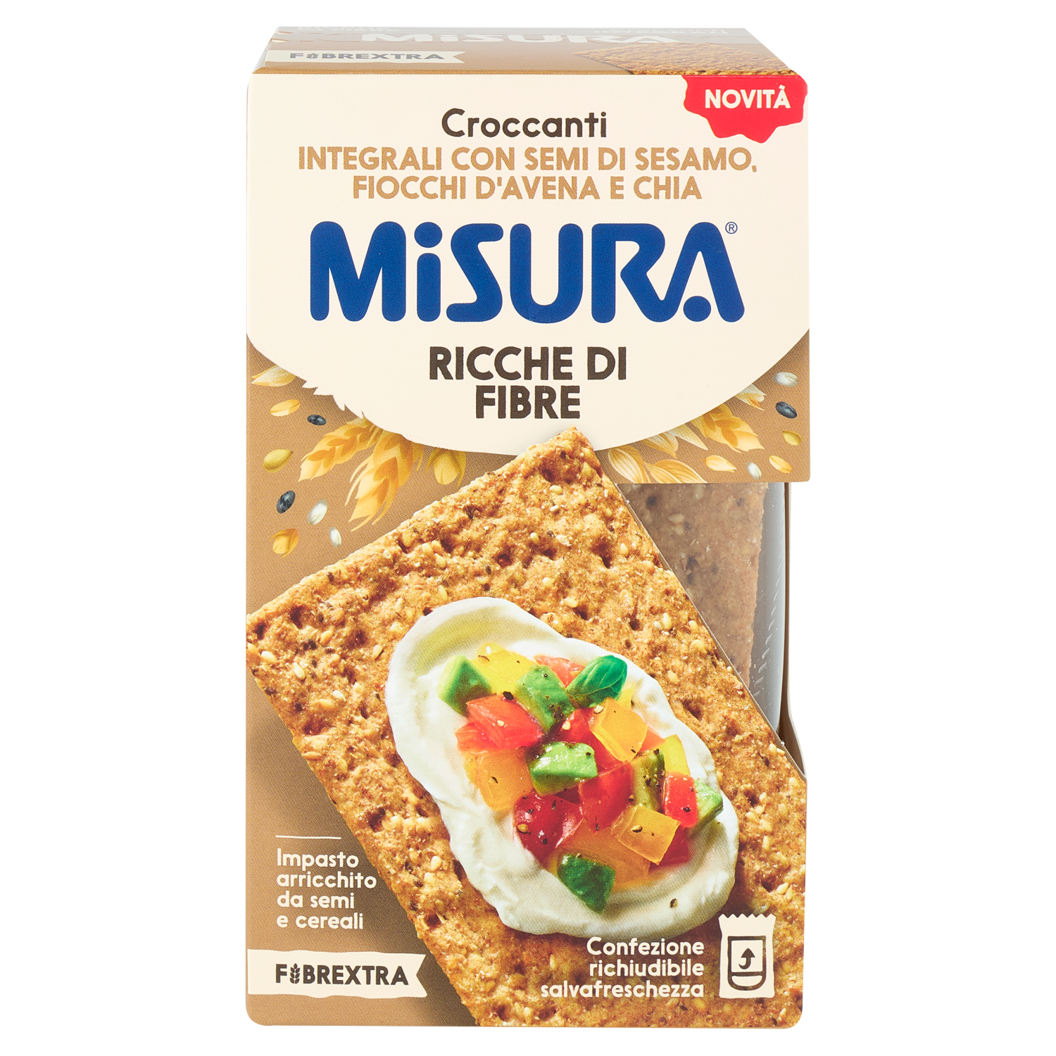 Misura Fibrextra Croccanti Integrali con Semi di Sesamo, Fiocchi d'Avena e Chia 160 g