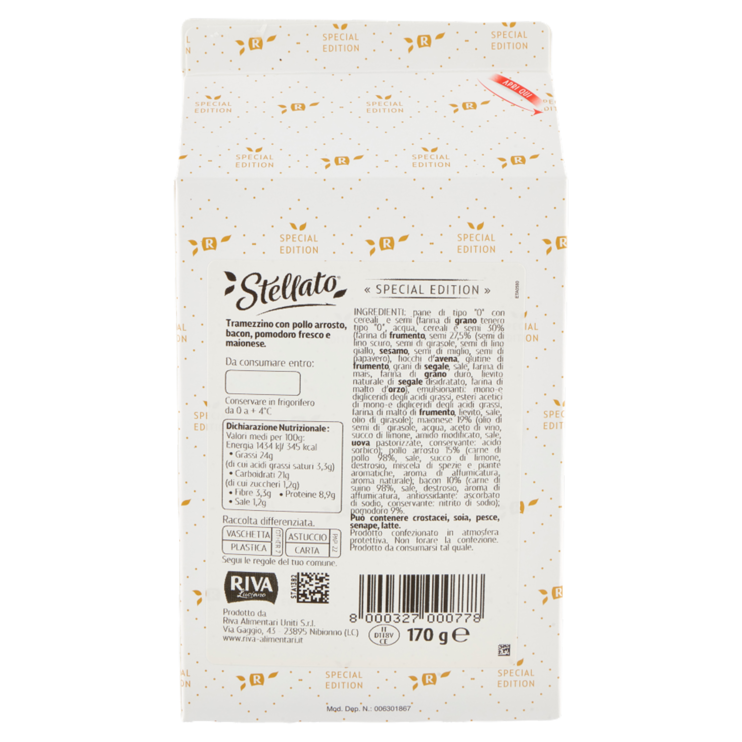 Riva Stellato Tramezzino Pollo Arrosto, Bacon, Pomodoro Fresco 170 g