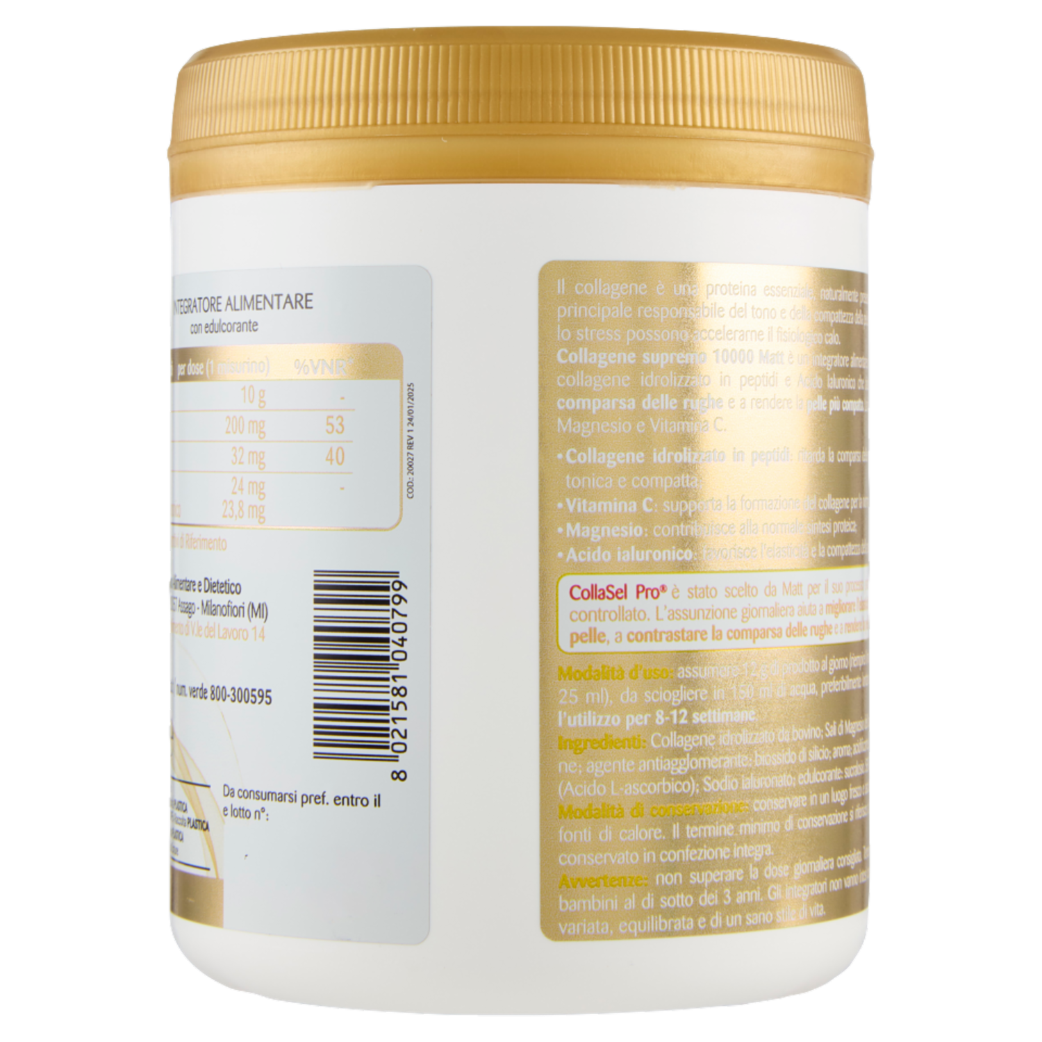 Matt Bellezza Collagene Supremo 10.000 con Acido Ialuronico 180 g