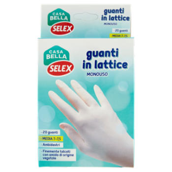 Selex Casa Bella Guanti Monouso in Lattice Naturale Misura Media (7-7,5) Dispenser 20 pezzi