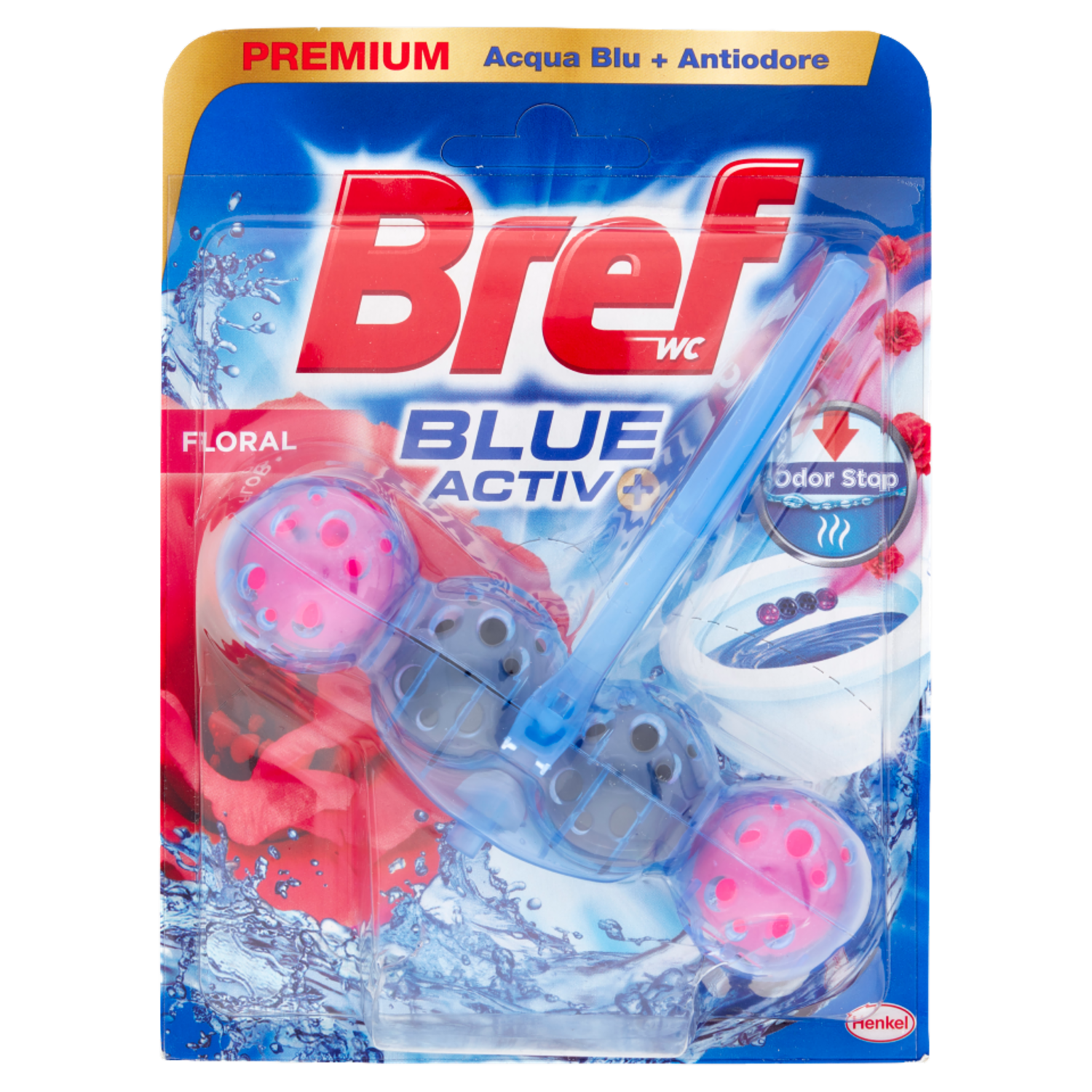 Bref Blue Activ+ Floral - Tavoletta detergente per WC. ATTENZIONE: Provoca irritazione cutanea. Provoca grave irritazione oculare. In caso di consultazione di un medico, tenere a disposizione il contenitore o l'etichetta del prodotto. Tenere fuori dalla portata dei bambini. Indossare guanti protettivi, proteggere gli occhi/il viso. IN CASO DI CONTATTO CON LA PELLE: lavare abbondantemente con acqua. IN CASO DI CONTATTO CON GLI OCCHI: sciacquare accuratamente per parecchi minuti. Togliere le eventuali lenti a contatto se è agevole farlo. Continuare a sciacquare. Se l'irritazione degli occhi persiste, consultare un medico. Per informazioni a personale medico scrivere via e-mail: info_formulazioni_Reg.Detergenti@henkel.com. CENTRO ANTIVELENI: 02/66101029. UFI: 6Q05-MWS7-D20J-7SQT A.I.S.E.