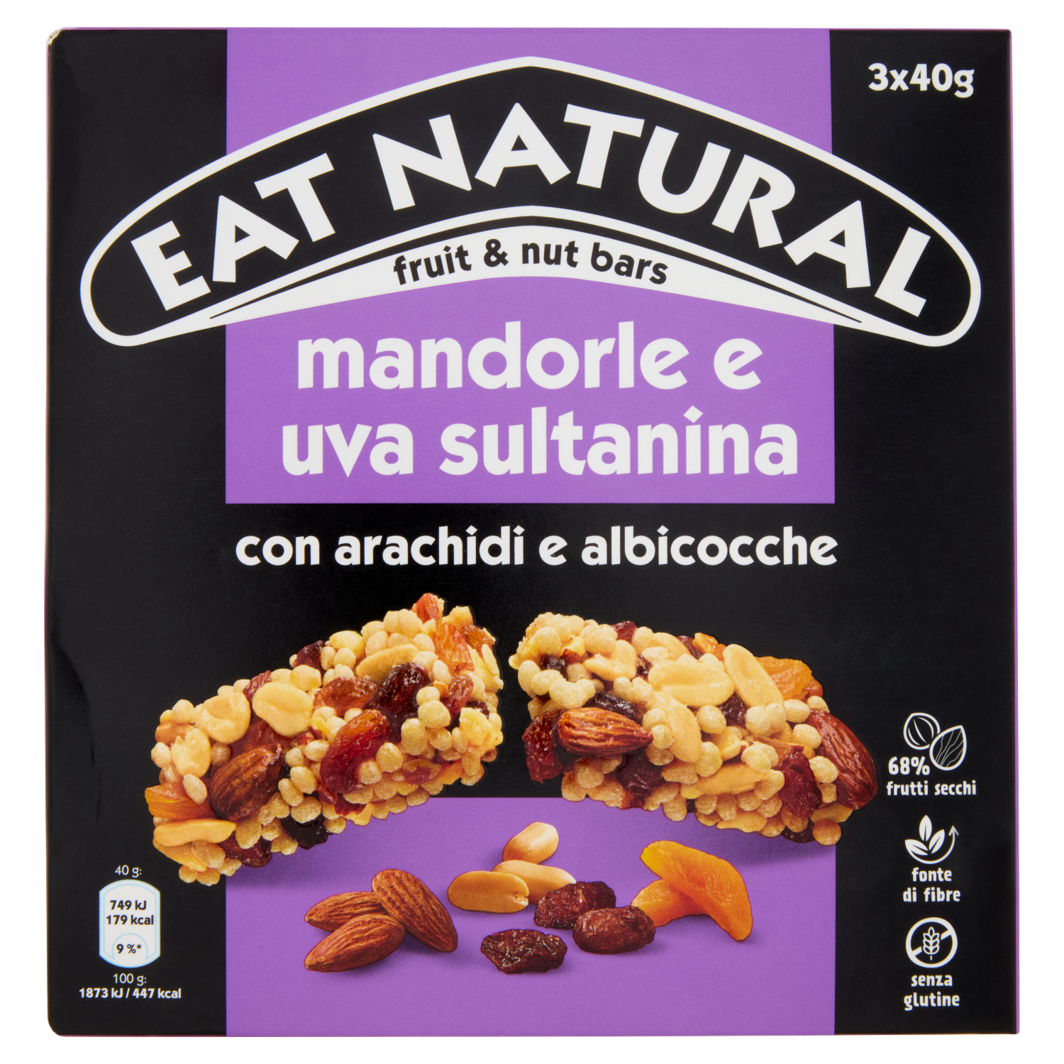 Eat Natural mandorle e uva sultanina con arachidi e albicocche 3 x 40 g