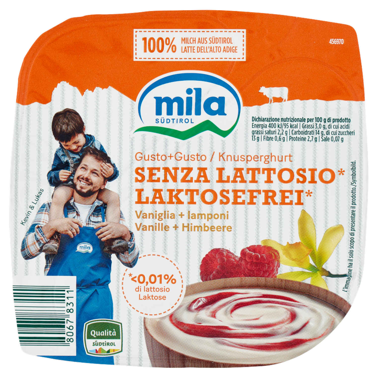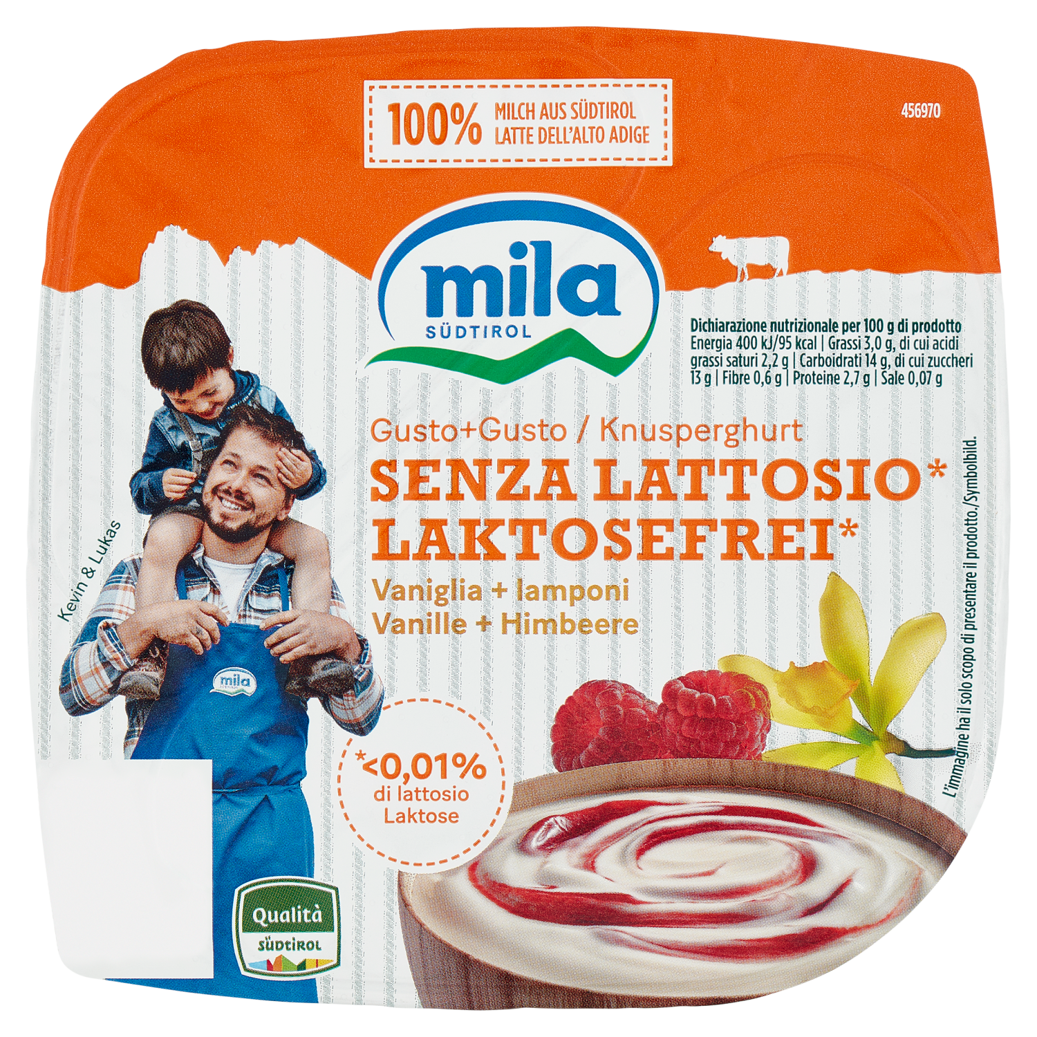 mila Gusto+Gusto Senza Lattosio* Vaniglia + lamponi 150 g
