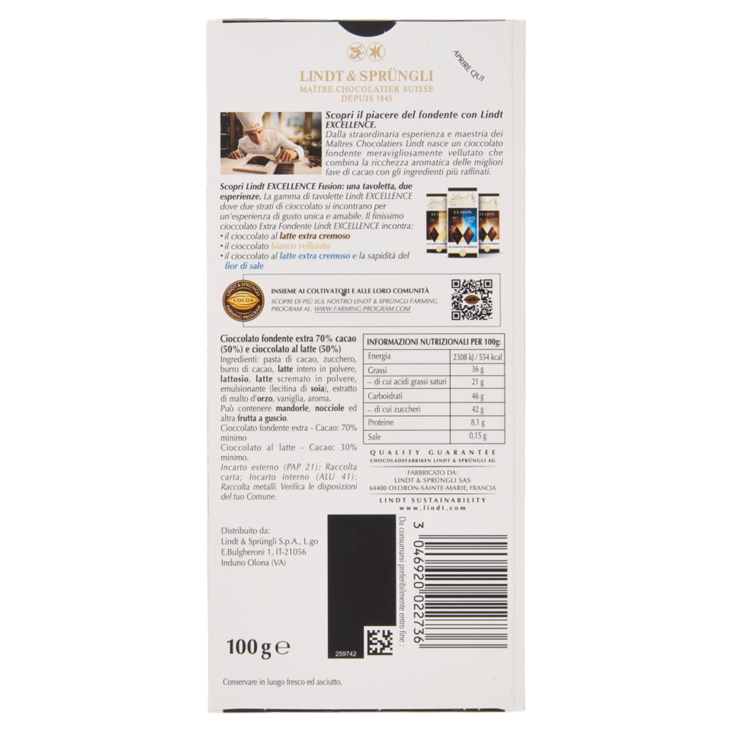 Lindt Excellence Fusion Tavoletta 2 strati cioccolato fondente 70% e latte 100 g