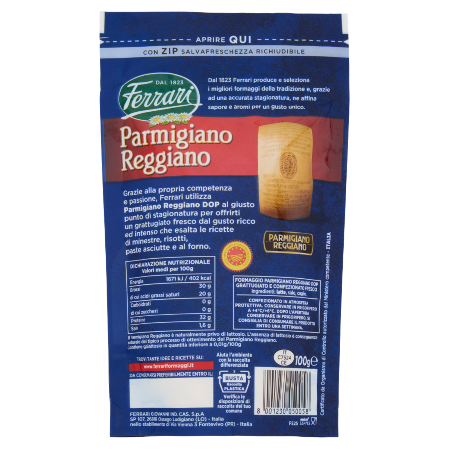 Ferrari Parmigiano Reggiano DOP Grattugiato Fresco 100 g