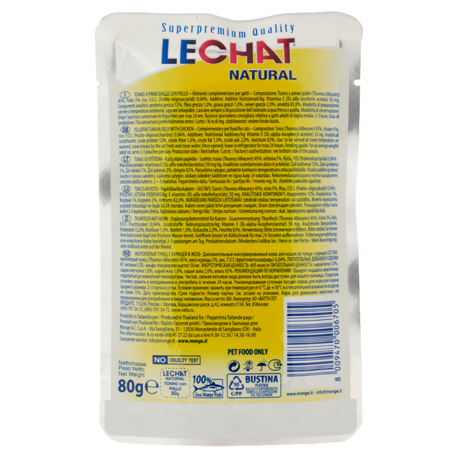 LeChat Natural Prelibati Pezzetti di Tonno con Pollo 80 g