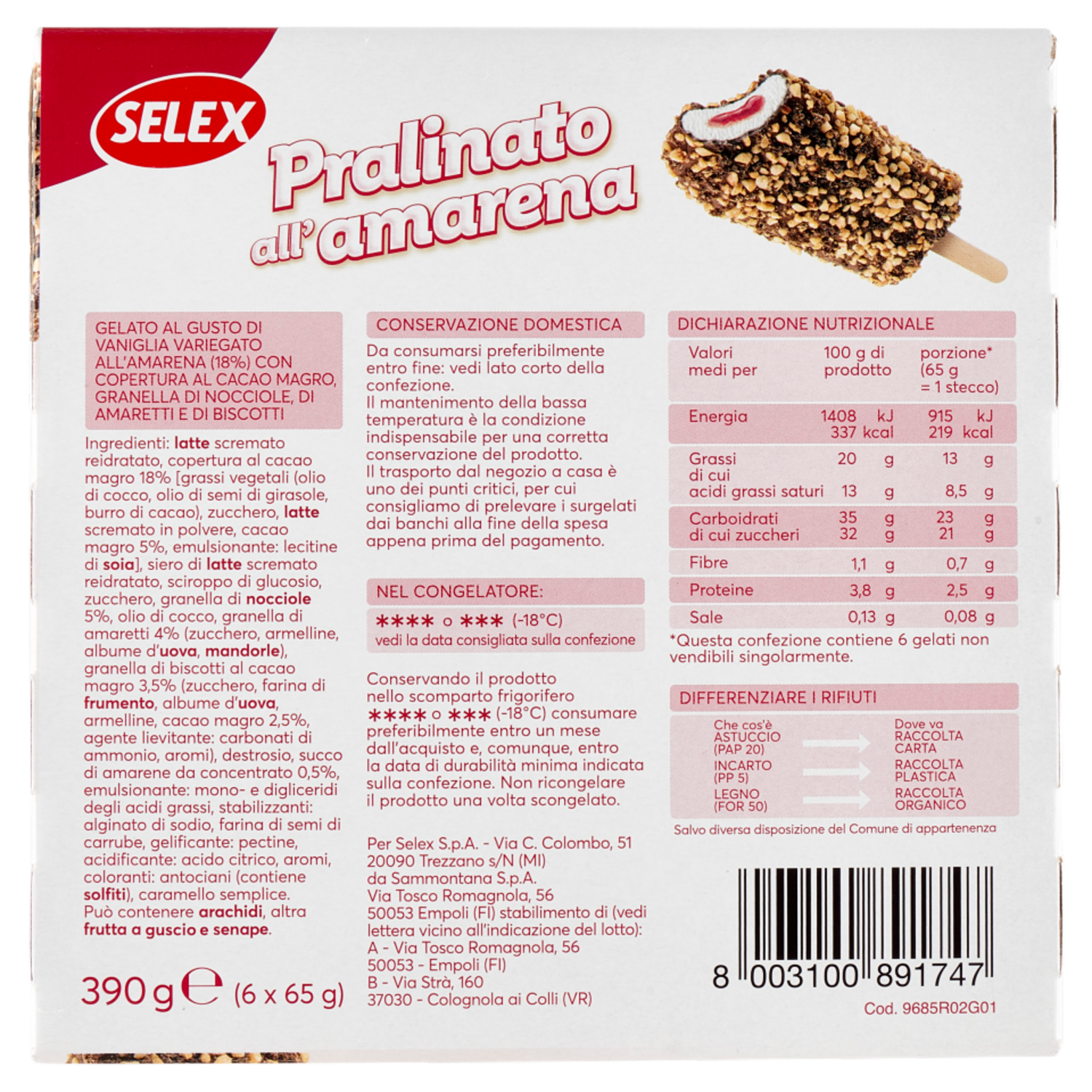 Selex 6 Gelati Pralinati all'Amarena 390 g