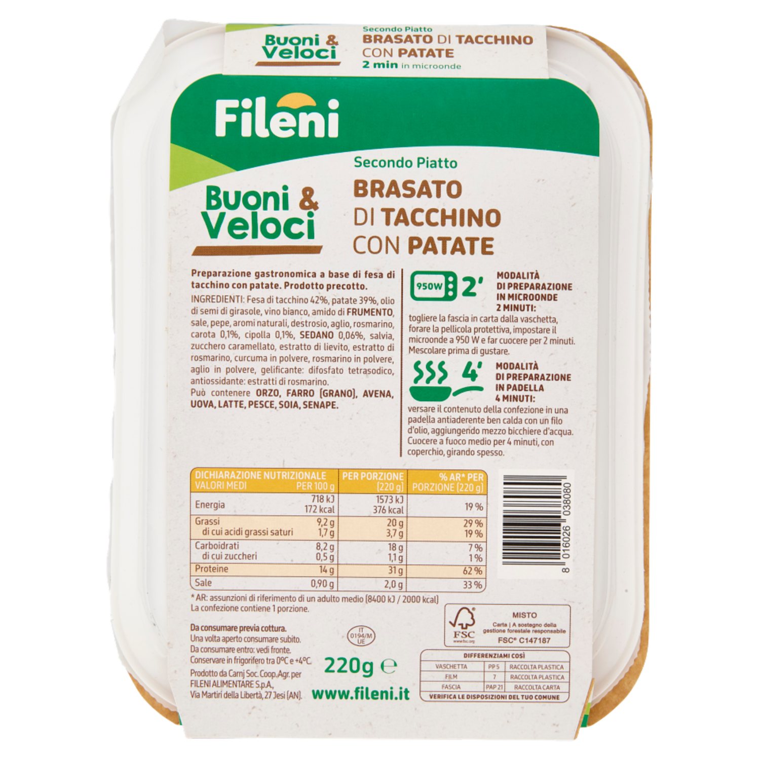 Fileni Buoni & Veloci Secondo Piatto Brasato di Tacchino con Patate 220 g