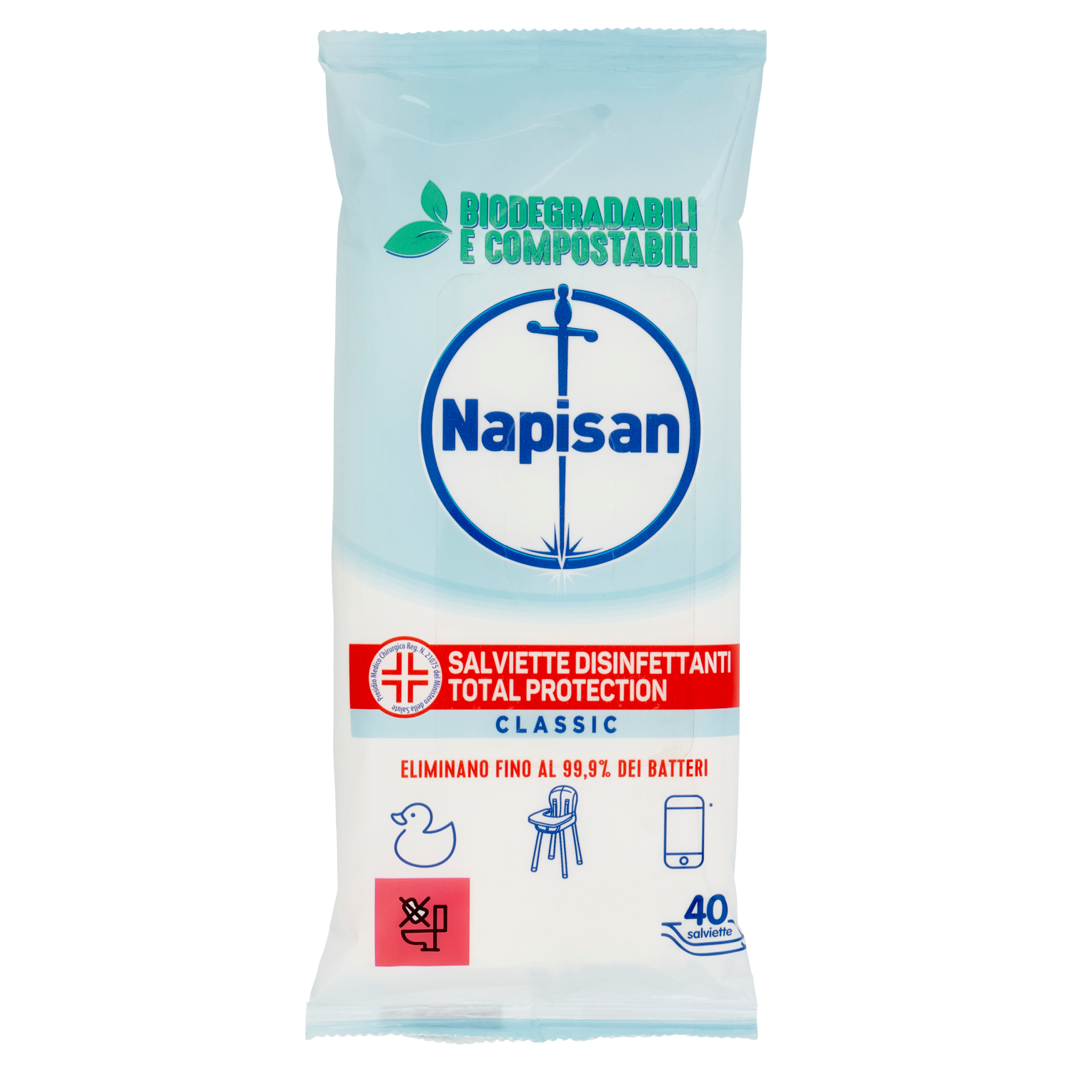 Napisan Salviette Disinfettanti Total Protection Classic Biodegradabili 40 pz