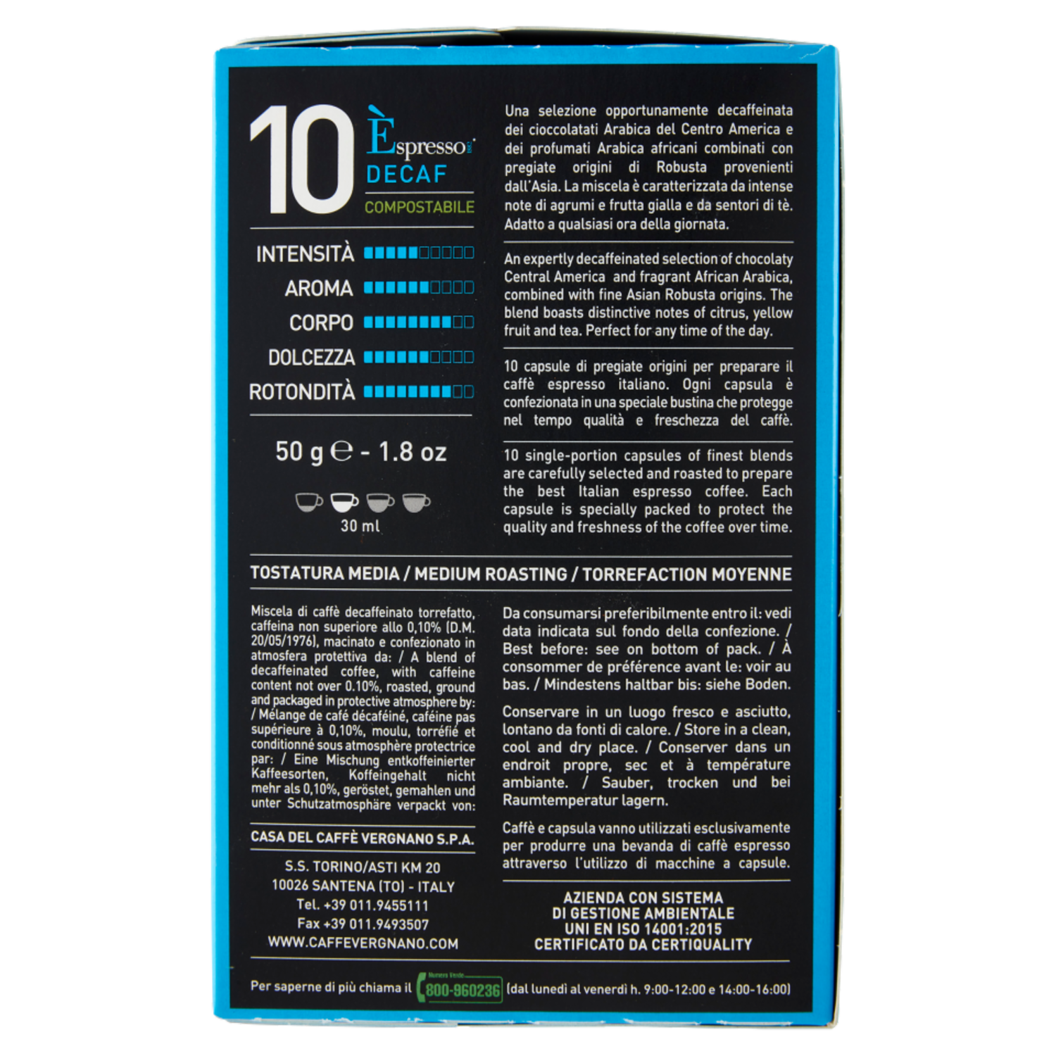 Caffè Vergnano 1882 Èspresso1882 Decaf Compostabile** Capsule Compatibili Nespresso* 10 x 5 g