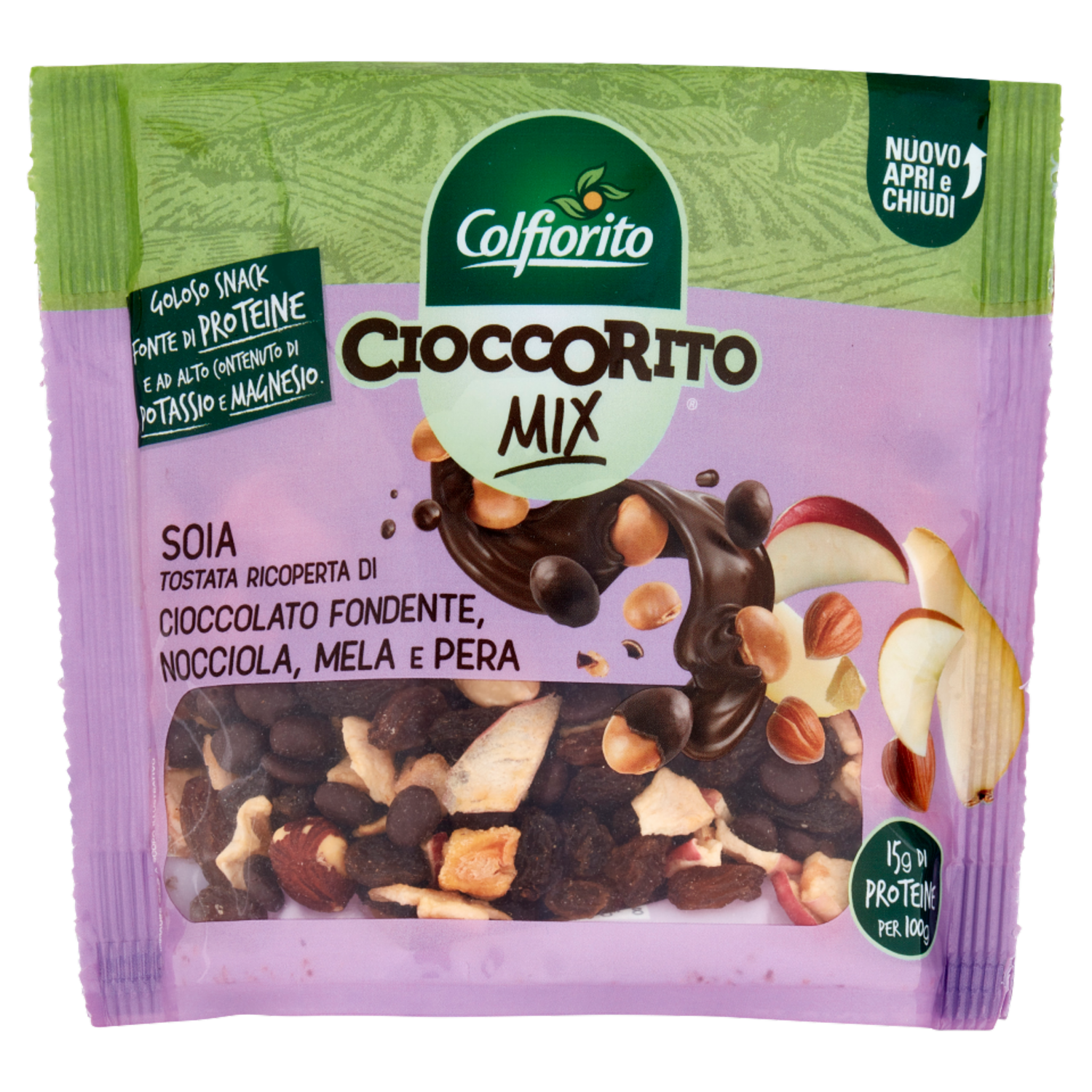 Colfiorito Cioccorito Mix Soia Tostata Ricoperta di Cioccolato Fondente, Nocciola, Mela e Pera 150 g