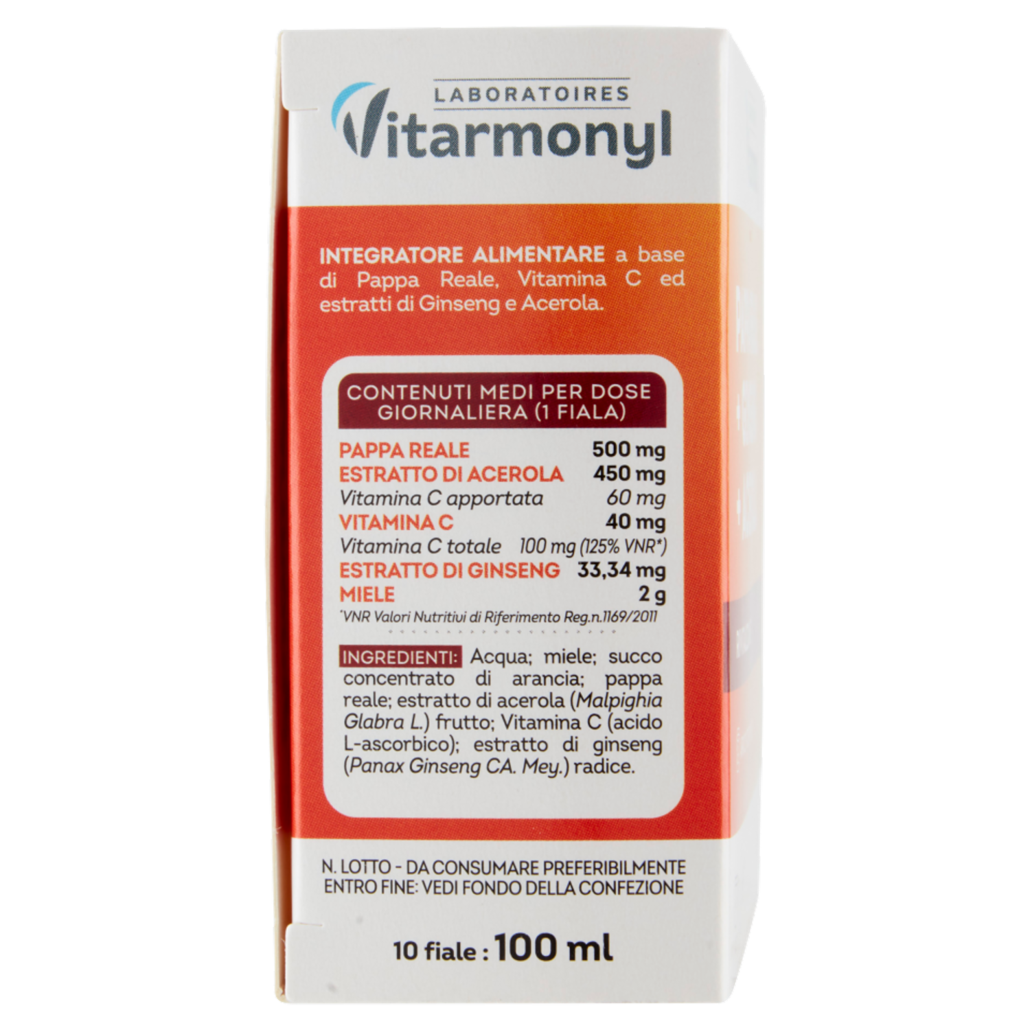 Laboratoires Vitarmonyl Pappa Reale + Ginseng + Acerola 10 Fiale 100 ml