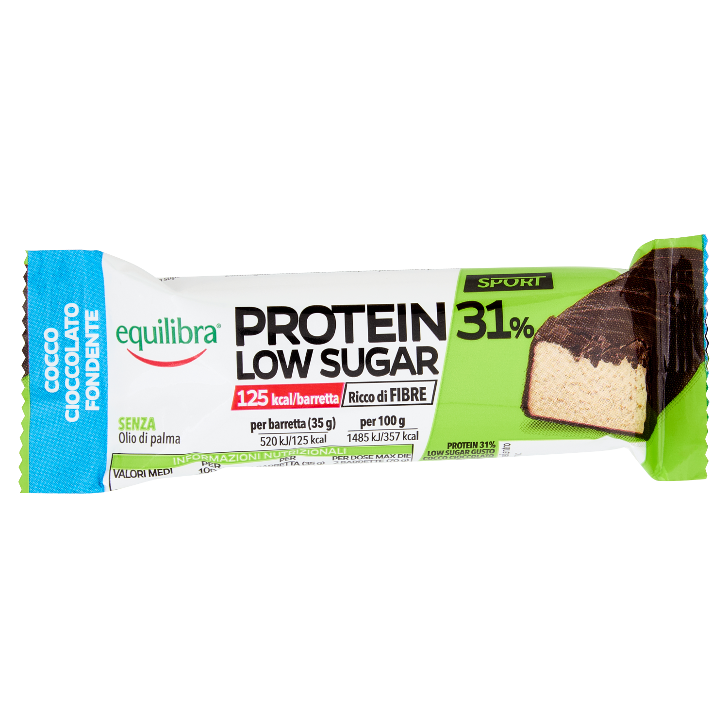 equilibra Sport Protein 31% Low Sugar Cocco Cioccolato Fondente 35 g