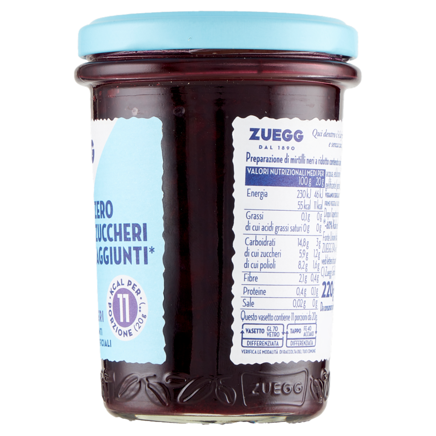 Zuegg Zero Zuccheri Aggiunti* Mirtilli Neri 220 g