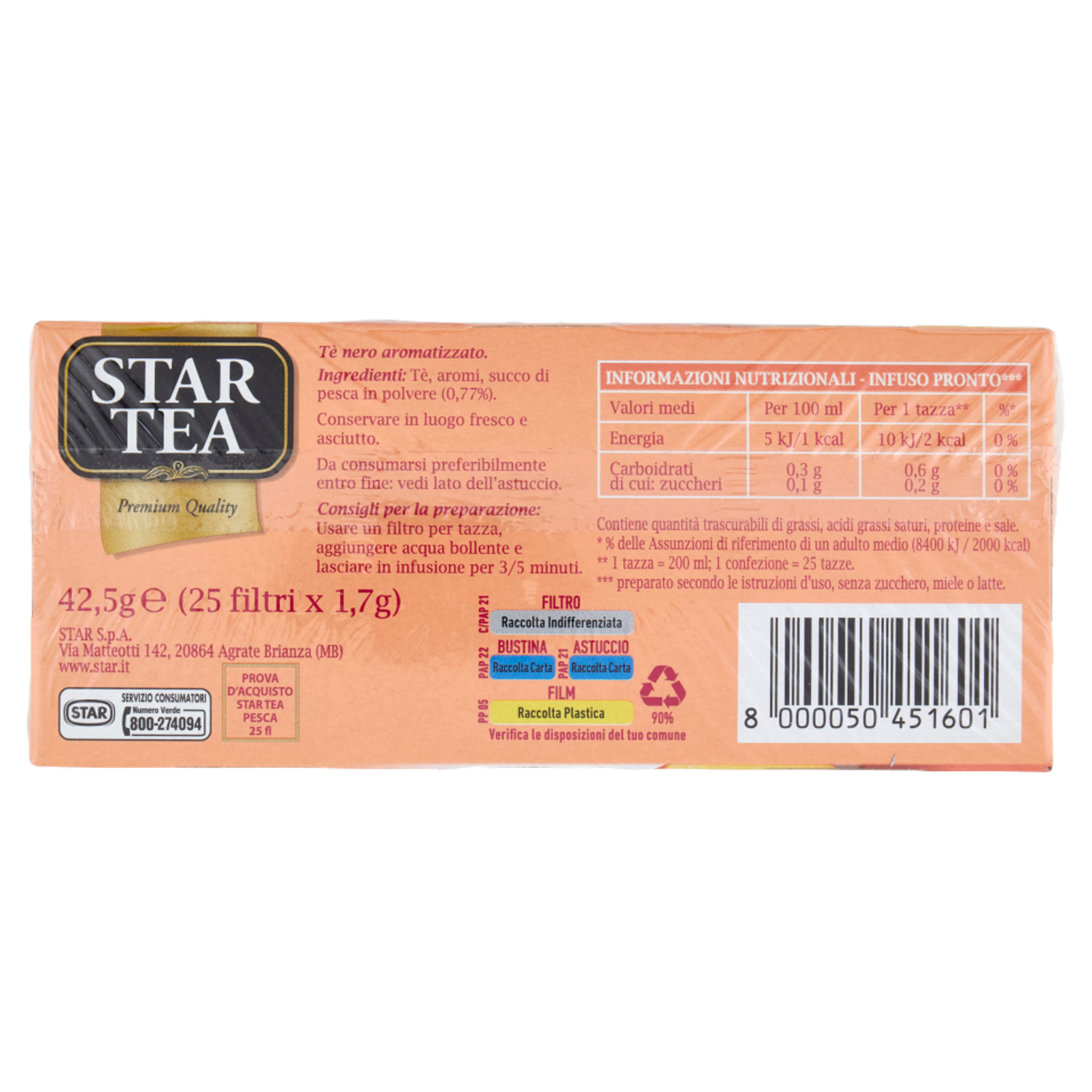 Star Tea Pesca con succo di frutta Filtri 25 x 1,7 g