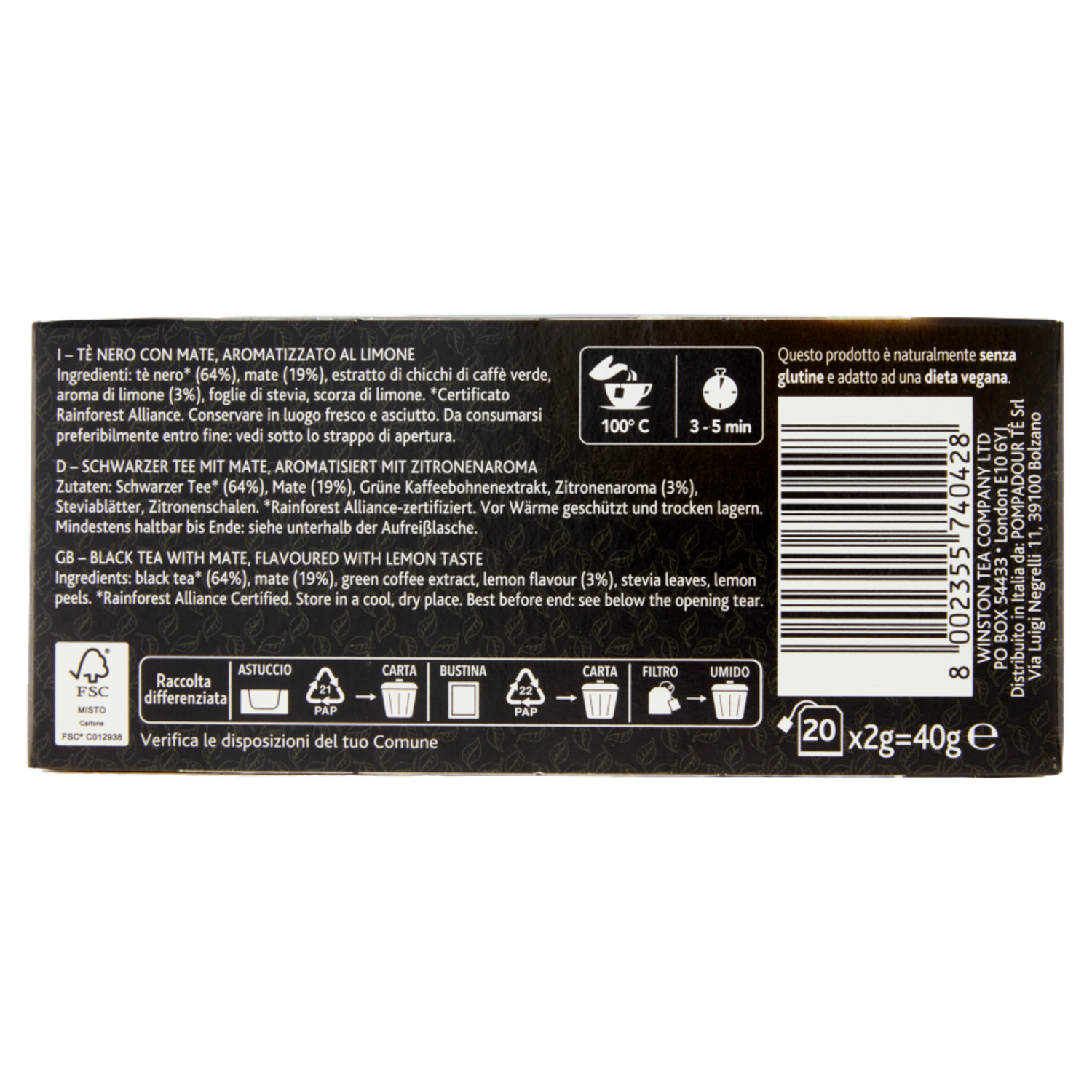 Sir Winston Tea Mate e Limone 20 x 2 g