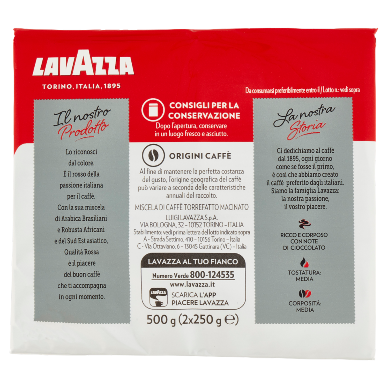 Lavazza Qualità Rossa Caffè Macinato 2 x 250 g