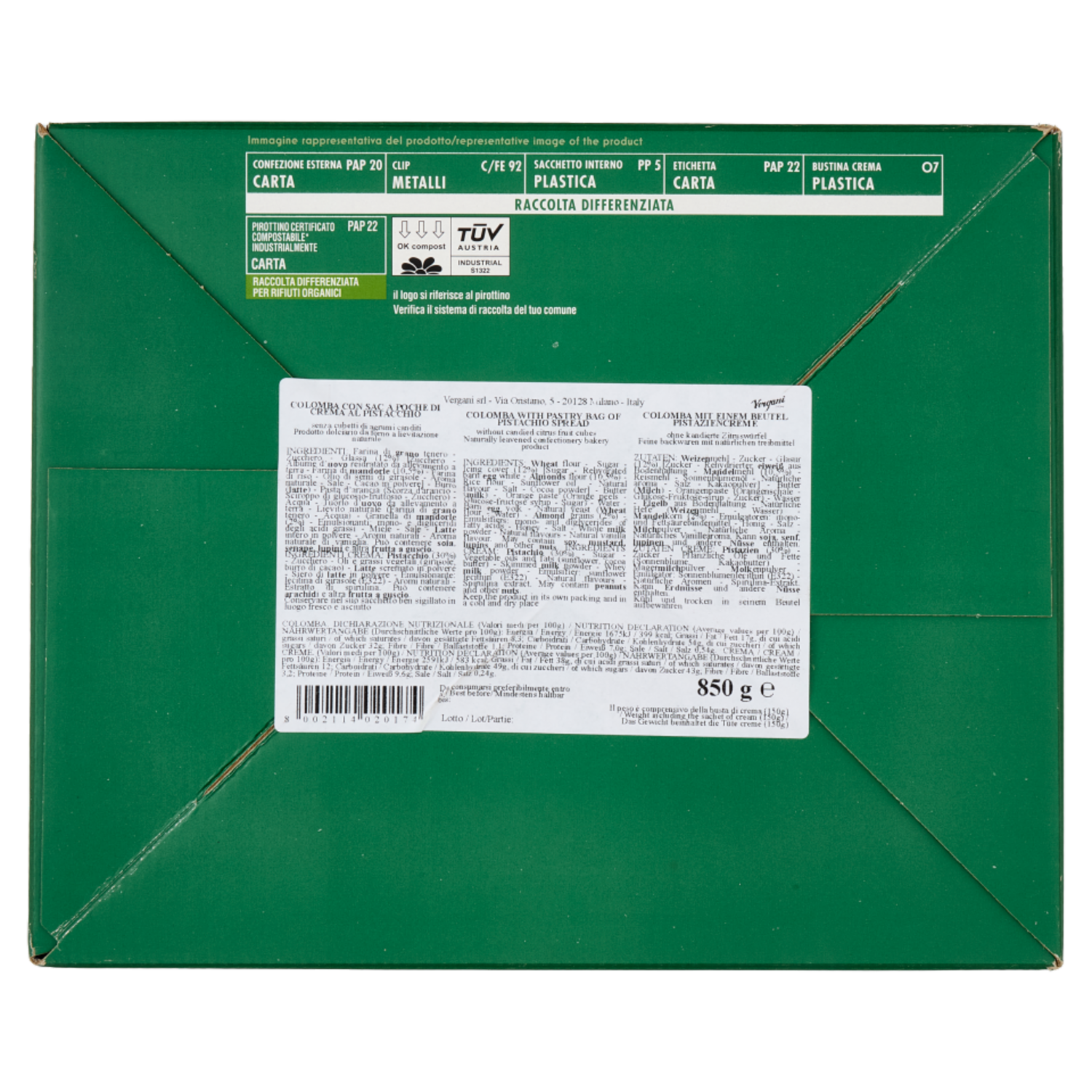 Vergani Colomba con Crema al Pistacchio 850 g