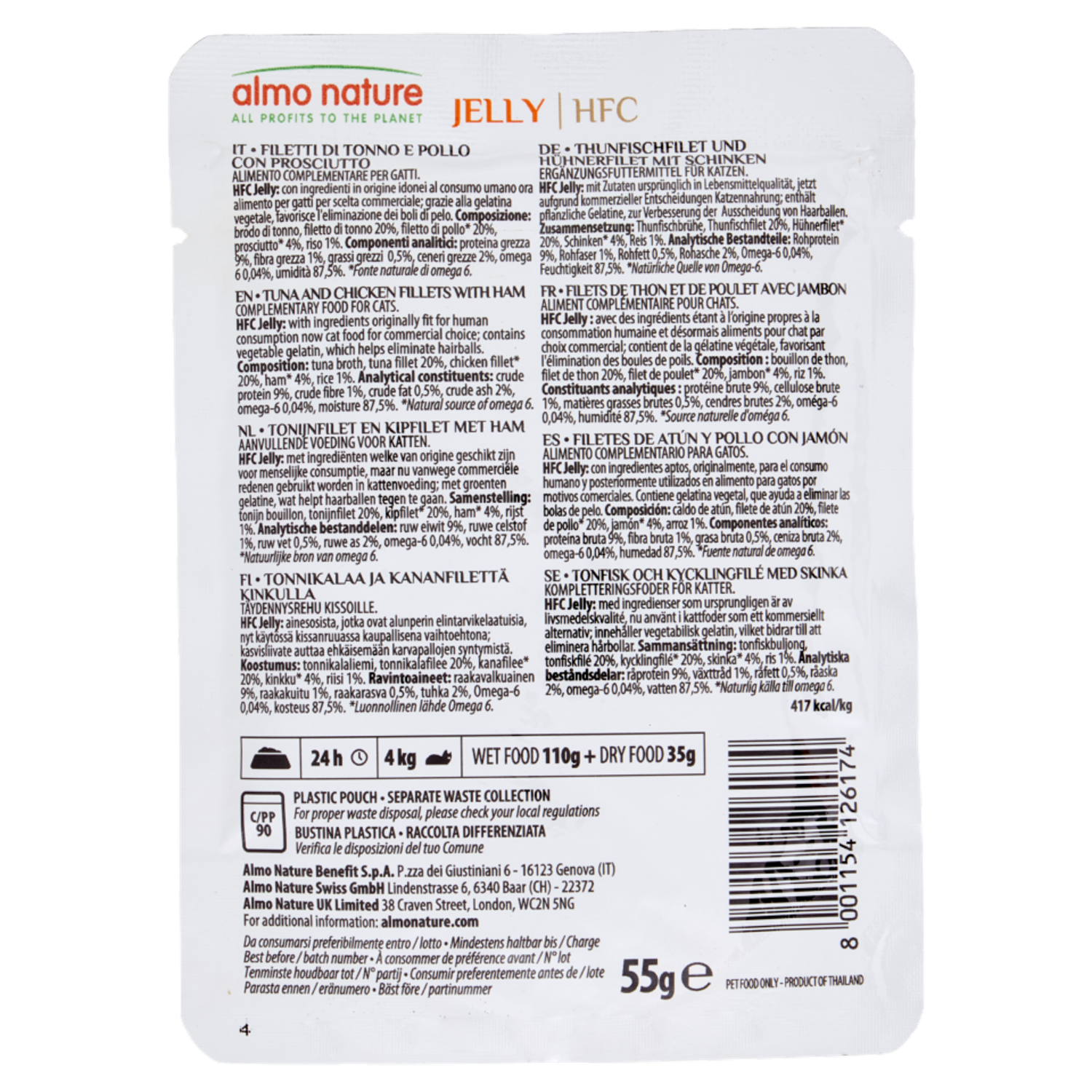 almo nature HFC Adult Cat Jelly Filetti di Tonno e Pollo con Prosciutto 55 g