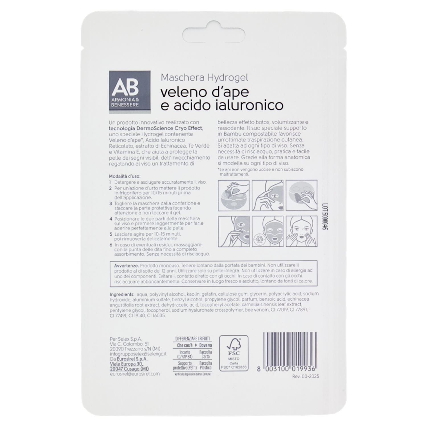 Armonia & Benessere Maschera Viso Hydrogel con Veleno D'Ape e Acido Ialuronico