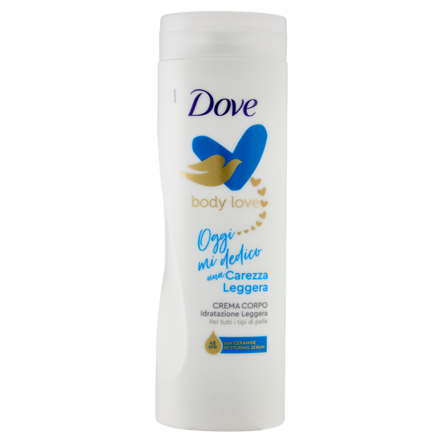 La crema corpo Dove Carezza Leggera è stata sviluppata per adattarsi a tutti i tipi di pelle, si assorbe rapidamente lasciando la pelle morbida e idratata. La nostra formula è infusa con Ceramide Restoring Serum, un complesso esclusivo che favorisce la naturale produzione delle Ceramidi, che rafforzano la barriera della pelle e la aiutano a mantenersi più idratata. Il risultato? Una pelle idratata e fresca per 48 ore dopo ogni applicazione, per trasformare questo momento in un atto di amore verso il tuo corpo.