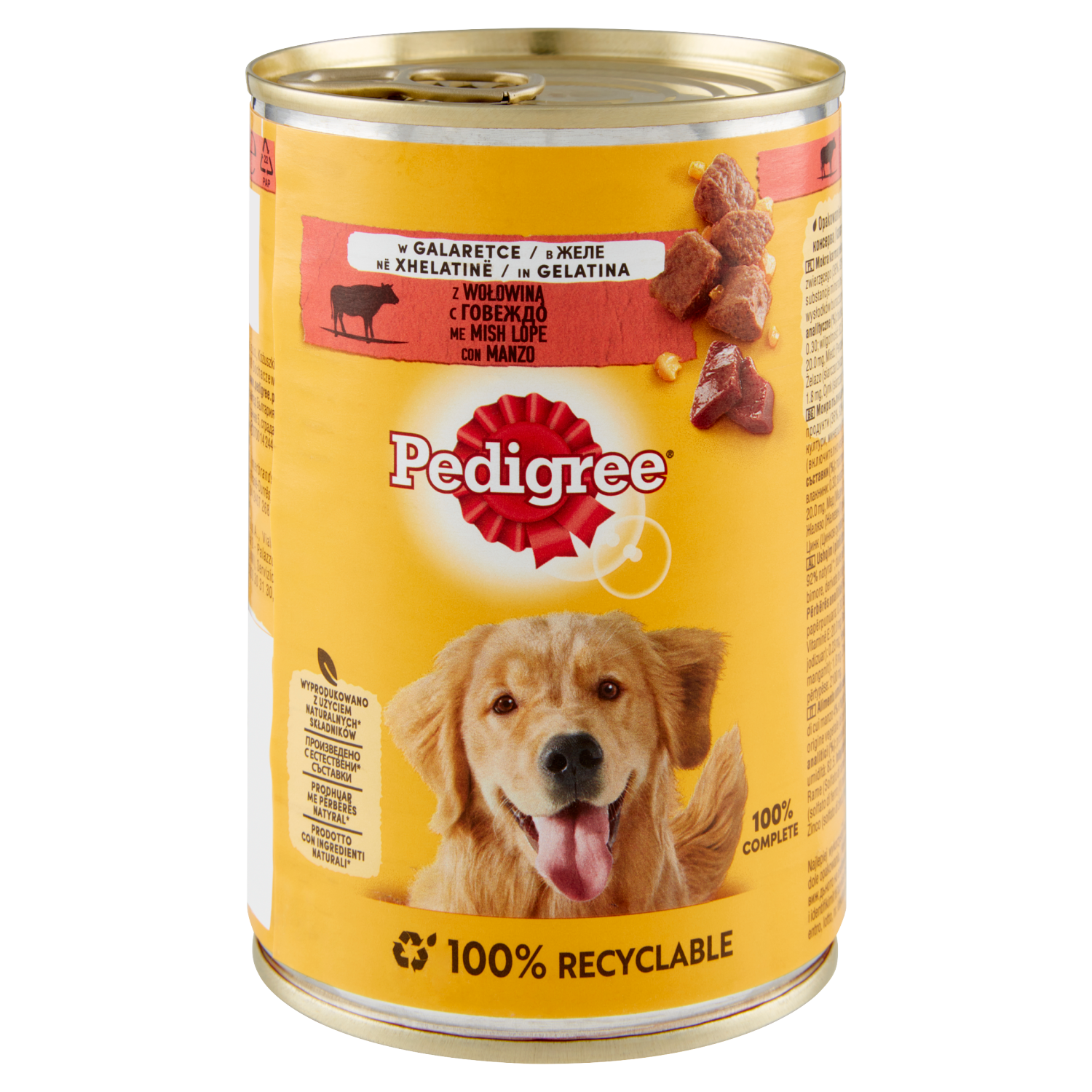 24h - Quantità d'impiego giornaliere raccomandate Peso del cane: 5 kg | Lattina: 400 g - 500 g Peso del cane: 10 kg | Lattina: 700 g - 800 g Peso del cane: 20 kg | Lattina: 1200 g - 1300 g Peso del cane: 30 kg | Lattina: 1600 g - 1700 g 100 g di alimento umido possono essere sostituiti da 20 - 23 g di alimento secco Pedigree. 77 kcal / 100 g Quantità d'impiego e modalità d'uso: Regola la quantità di alimento in base alle esigenze del tuo cane. Come? Visita il nostro sito. Lasciare sempre a disposizione dell'acqua fresca. Servire a temperatura ambiente, conservare in frigorifero per 2 giorni.