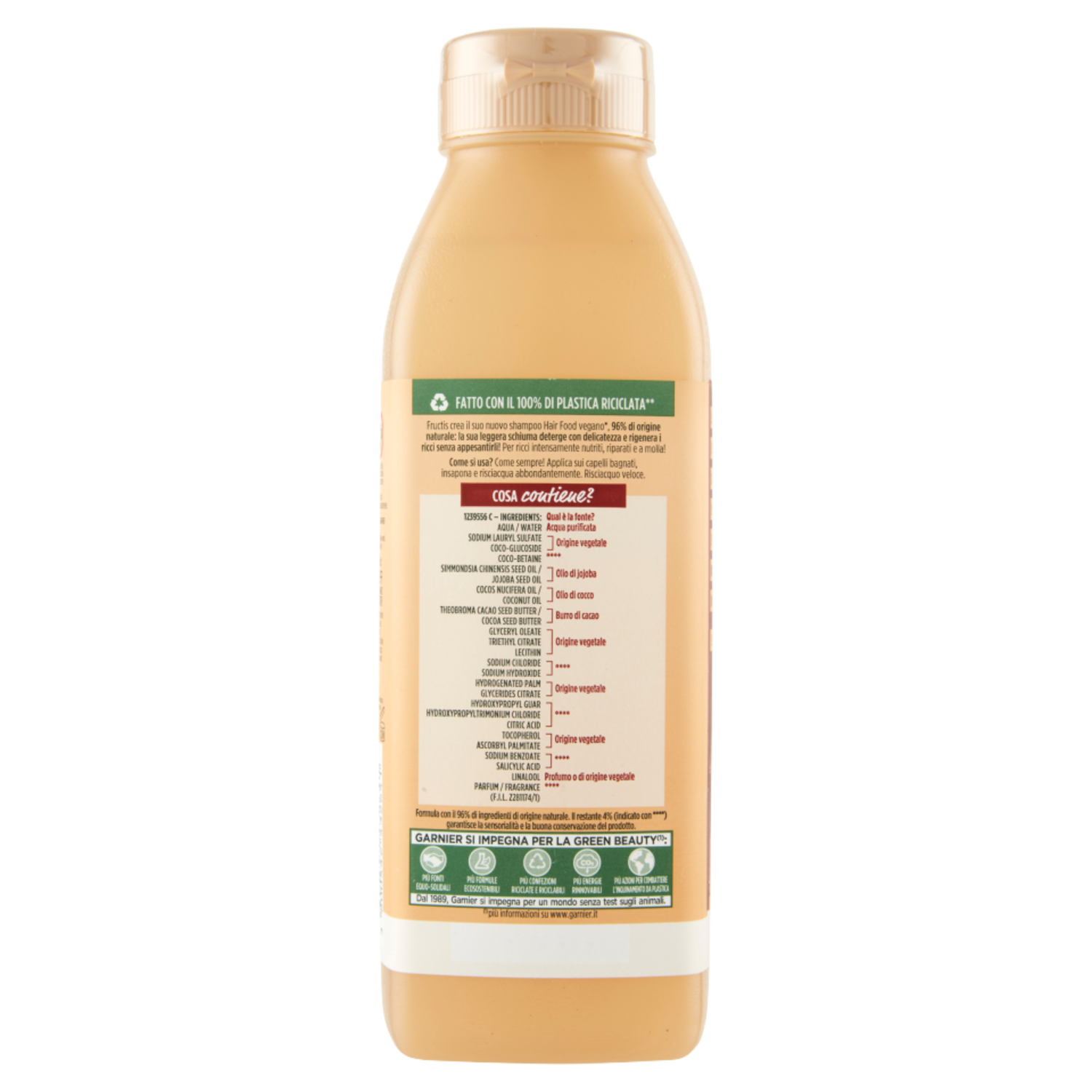 Garnier Fructis Shampoo Hairfood Burro di Cacao, per capelli secchi e ricci 350 ml
