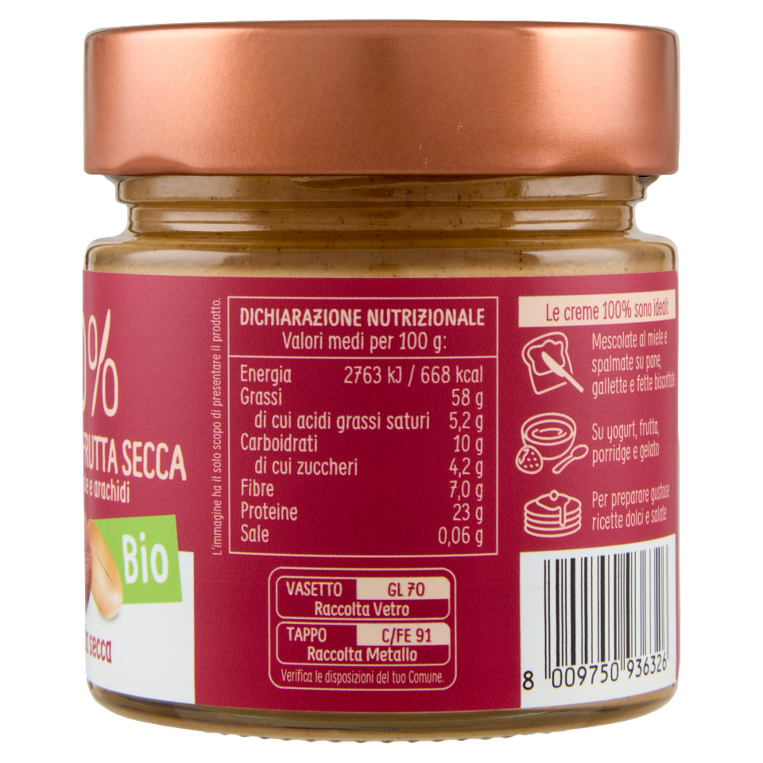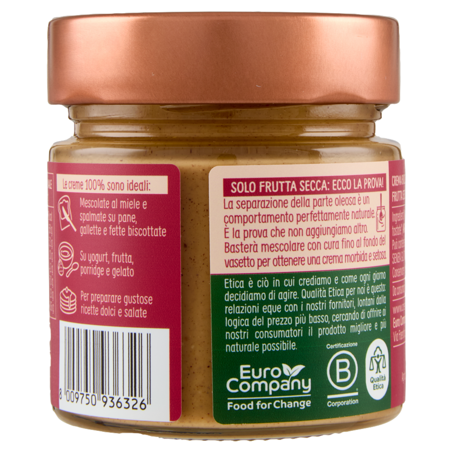 Euro Company 100% Crema Mix di Frutta Secca mandorle, nocciole e arachidi Bio 175 g