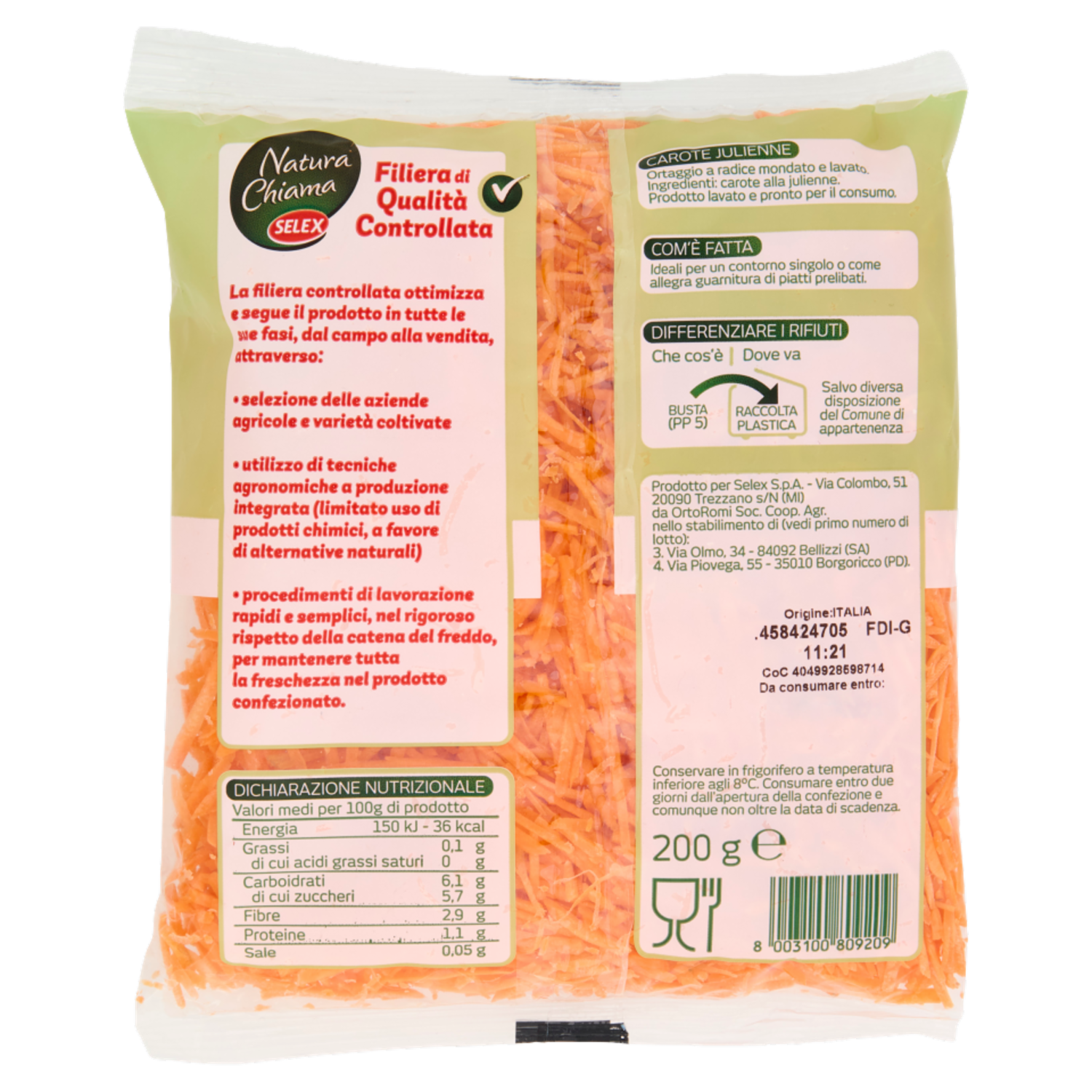 Selex Natura Chiama Carote Julienne Lavate e Pronte per il Consumo 200 g
