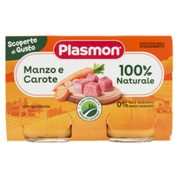 Plasmon Scoperte di Gusto Omogeneizzato Manzo e Carote 2 x 120 g