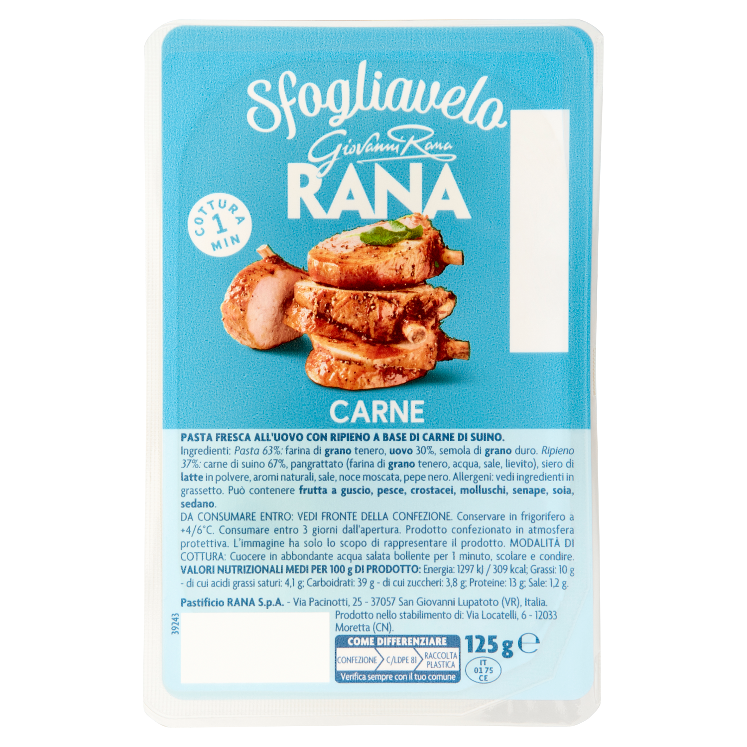 Pastificio Rana S.p.A. Via Pacinotti, 25 37057 San Giovanni Lupatoto (VR) Italia Prodotto nello stabilimento di: Via Locatelli, 6 12033 Moretta (CN)