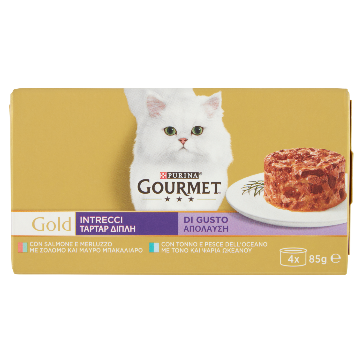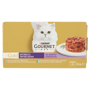 PURINA GOURMET Gold Intrecci di Gusto Salmone & Merluzzo / Tonno & Pesce dell'Oceano 4x85g