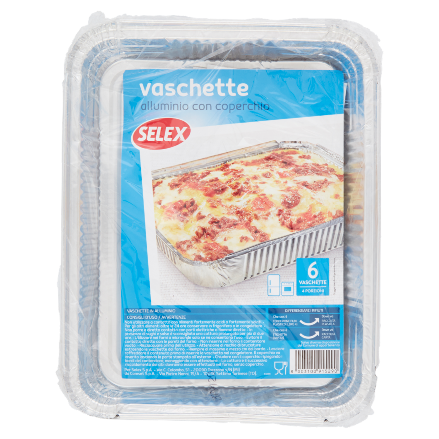 Selex Contenitore in Alluminio con Coperchio 22x17x3,5 cm 6 pezzi