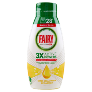 Fairy Gel Lavastoviglie Platinum Extra Brillantezza, Detersivo Piatti Limone 28 Lavaggi 504ml