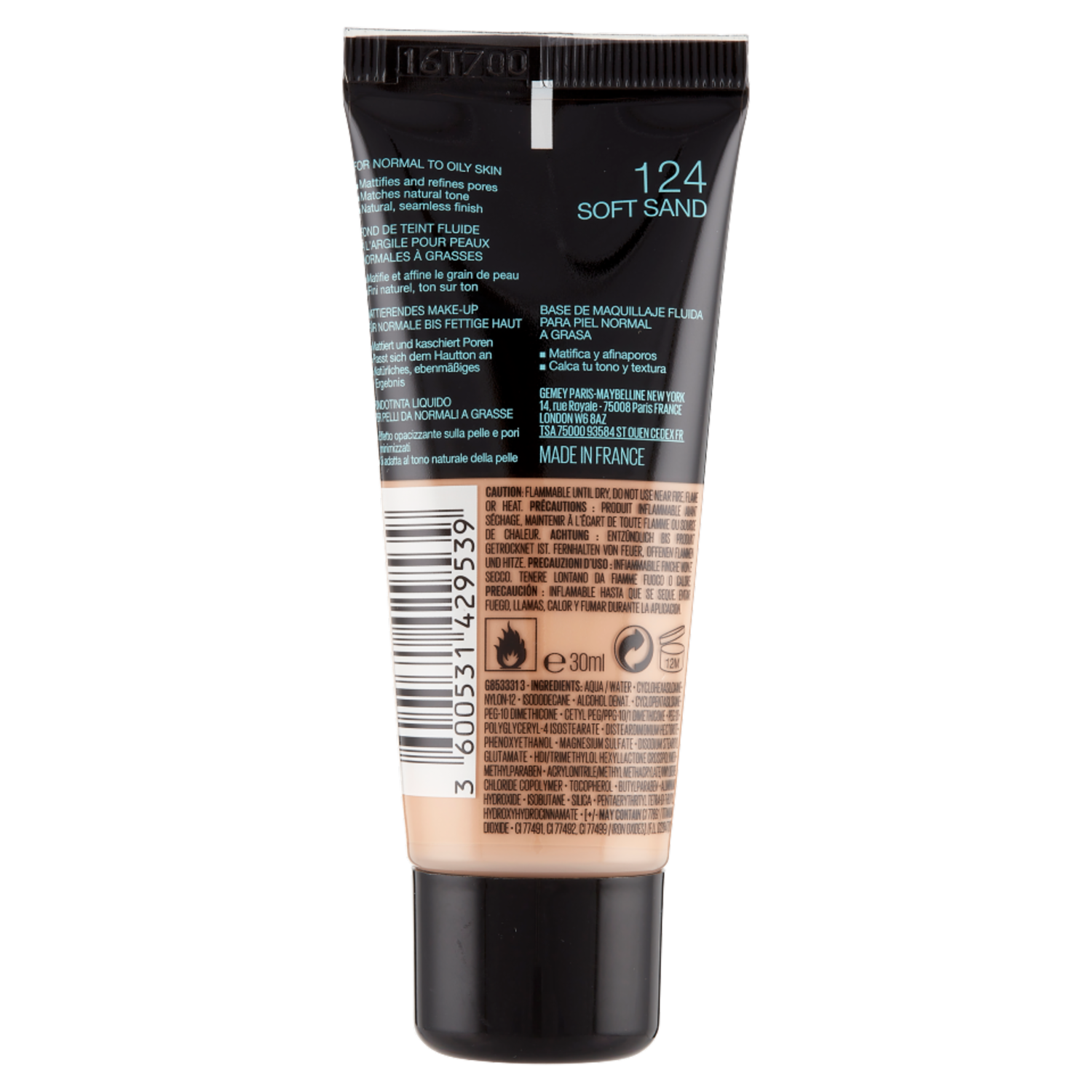 Maybelline New York Fondotinta Fit Me Matte&Poreless, Finish Opacizzante, 124 Soft Sand