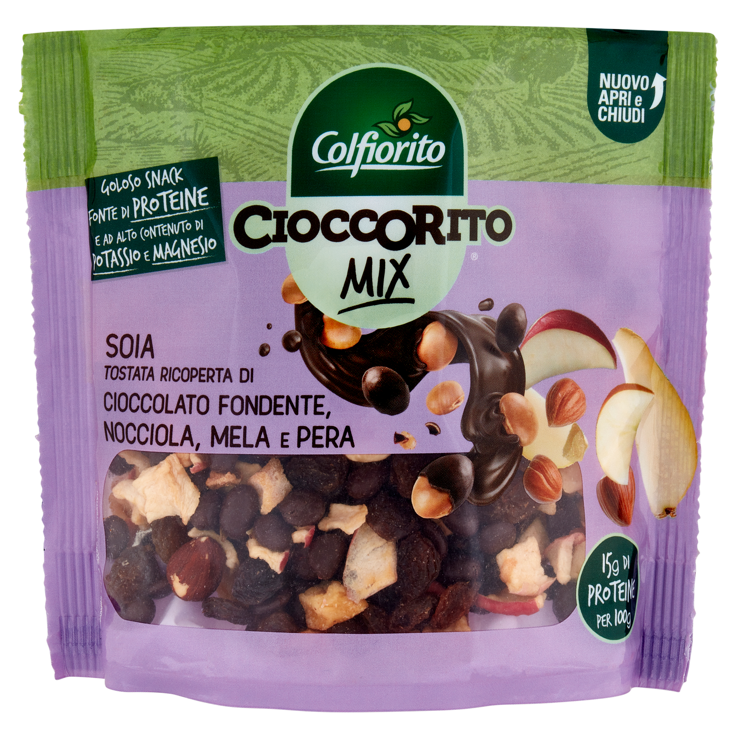 Colfiorito Cioccorito Mix Soia Tostata Ricoperta di Cioccolato Fondente, Nocciola, Mela e Pera 150 g