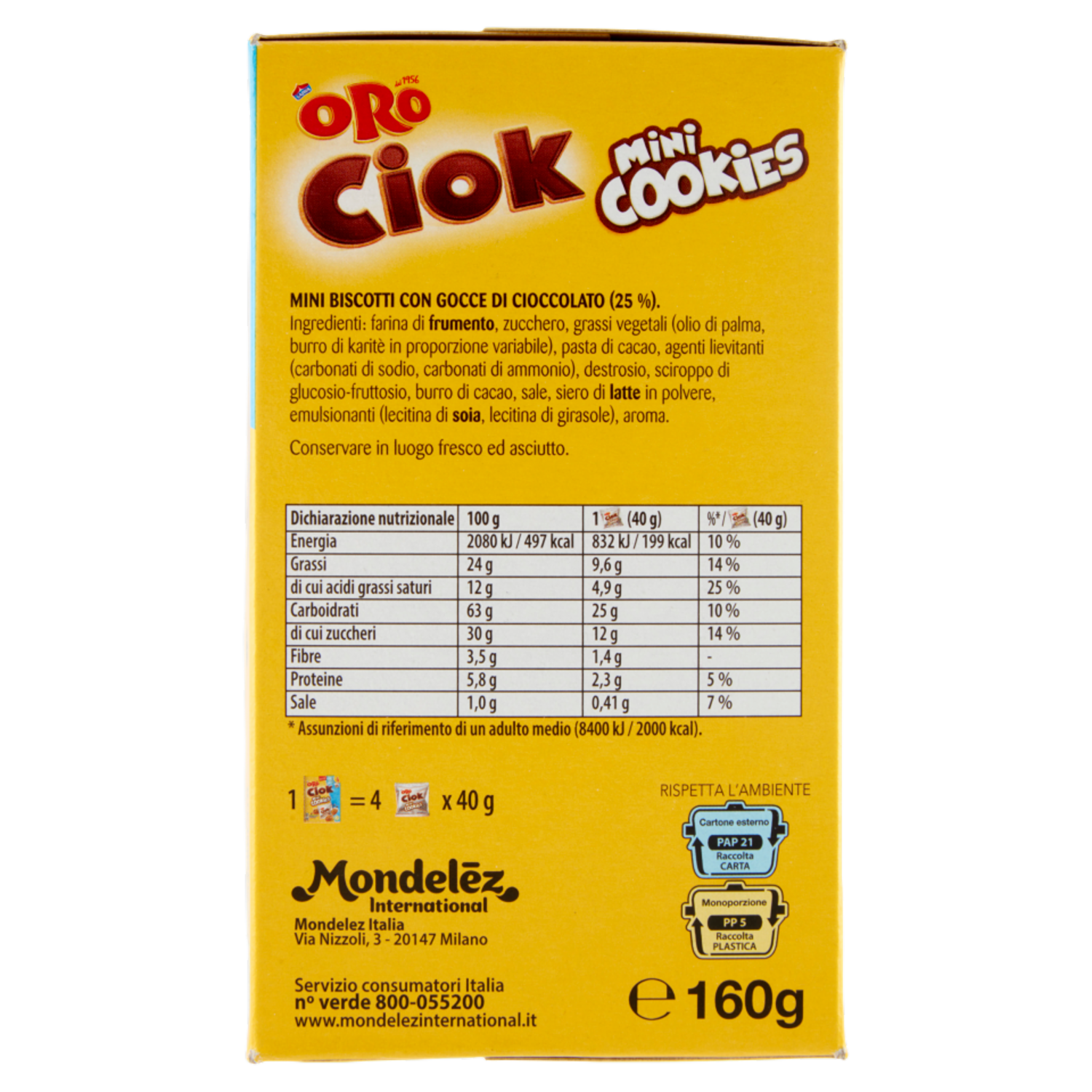 Oro Ciok Mini Cookies, mini biscotti con gocce di cioccolato - 160g