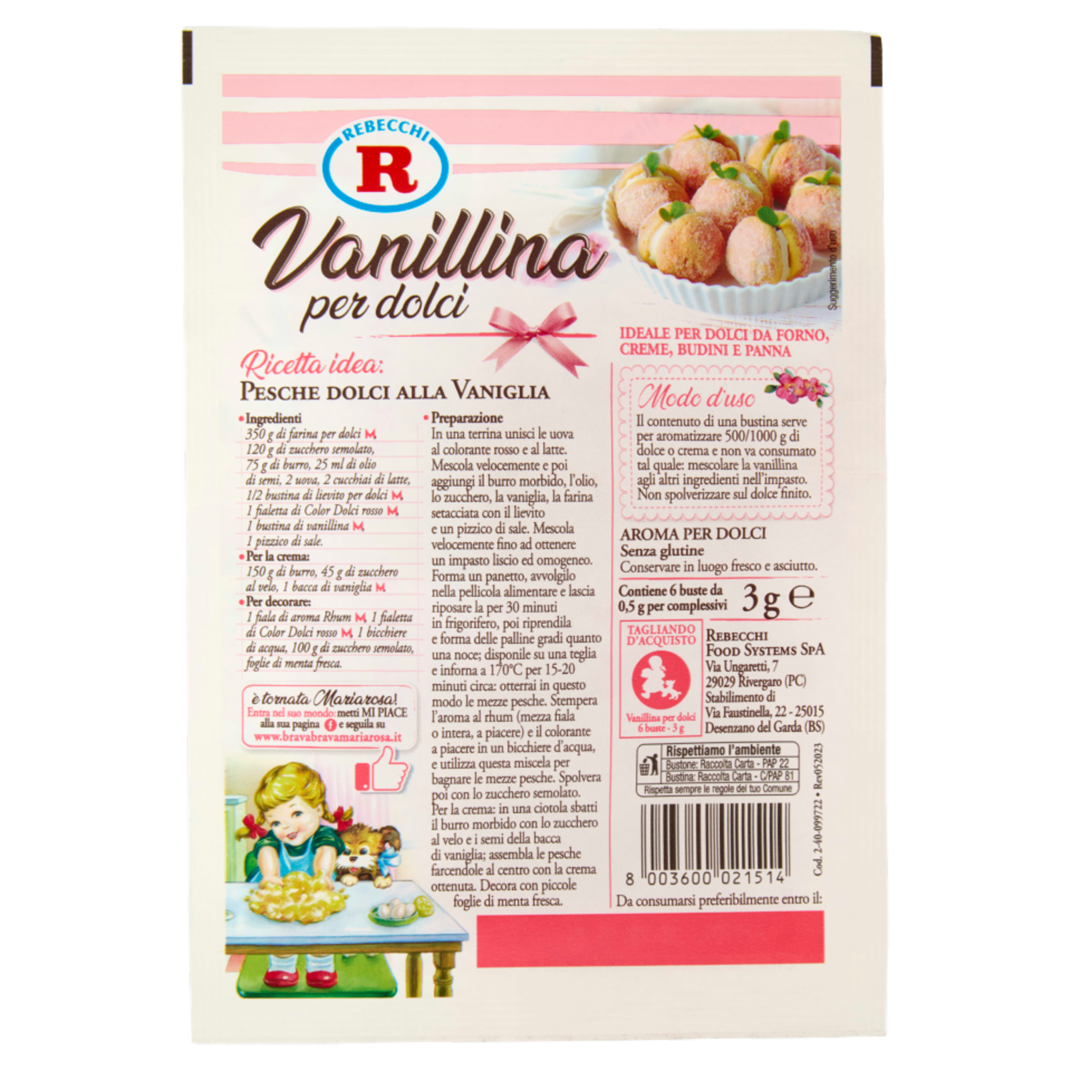Mariarosa Vanillina per dolci in Polvere 6 x 0,5 g
