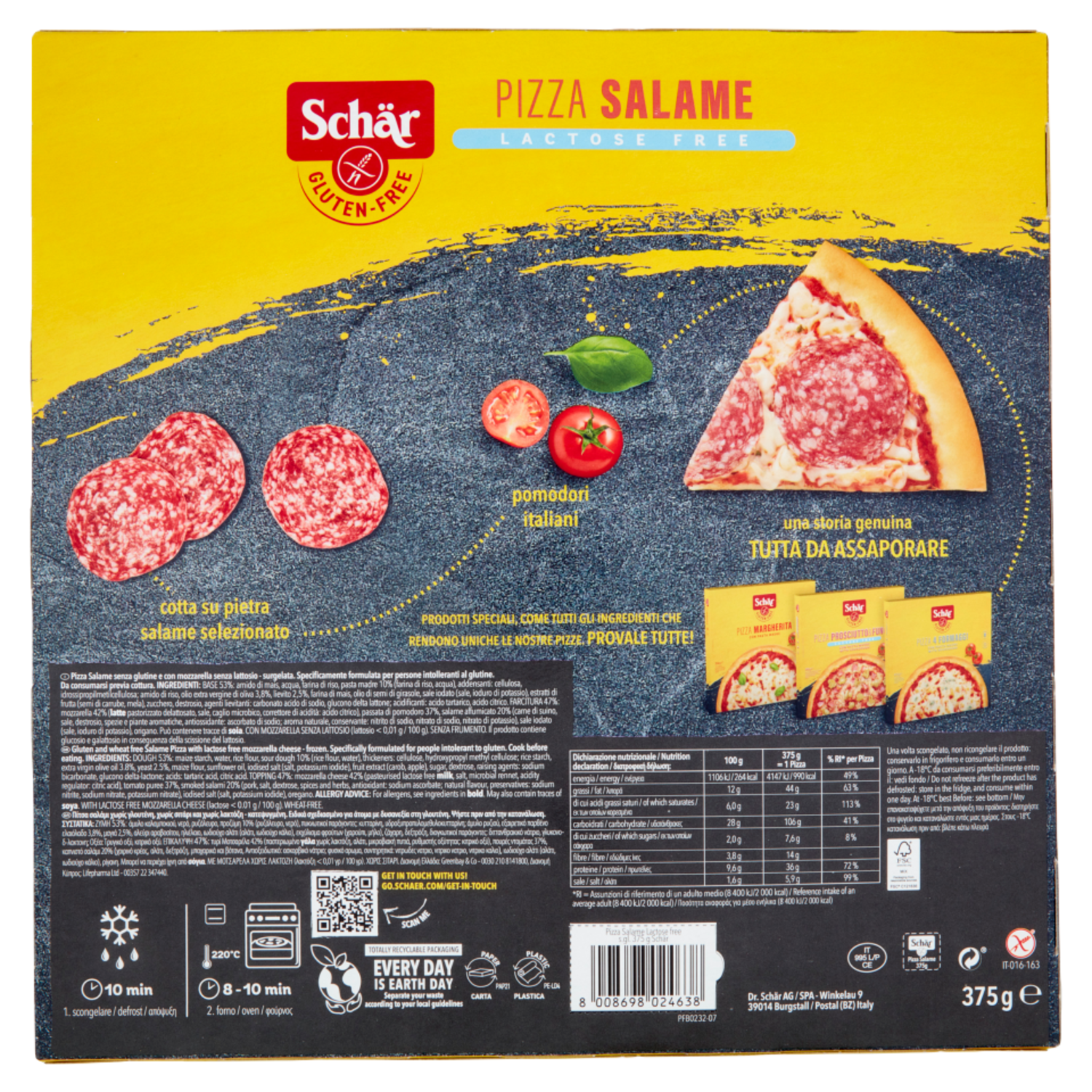 Schär Pizza Salame Lactose Free 375 g