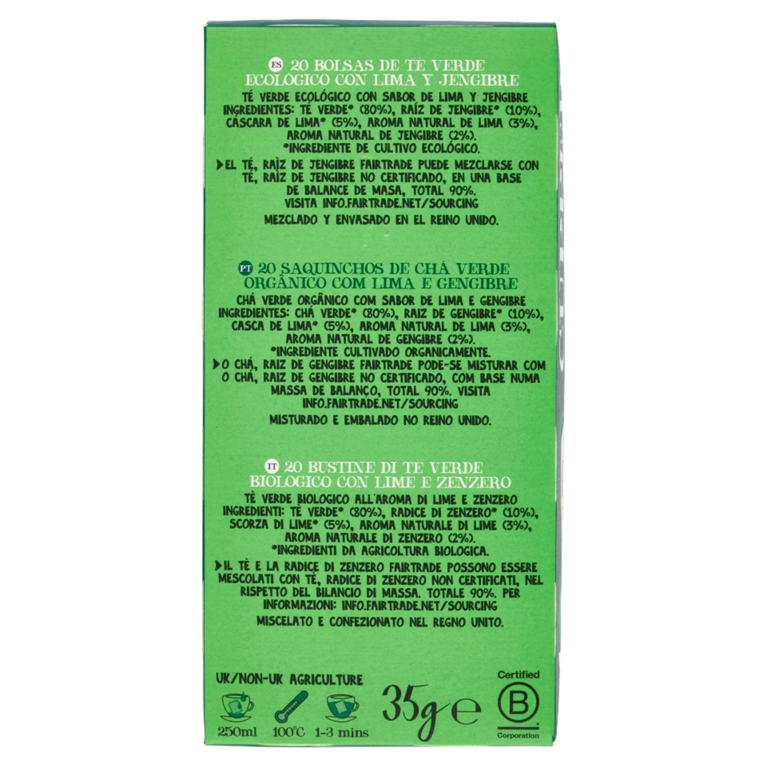 CUPPER Tè Verde Lime e Zenzero Biologico e Fairtrade, Tè Energizzante, 20 Bustine 35 g