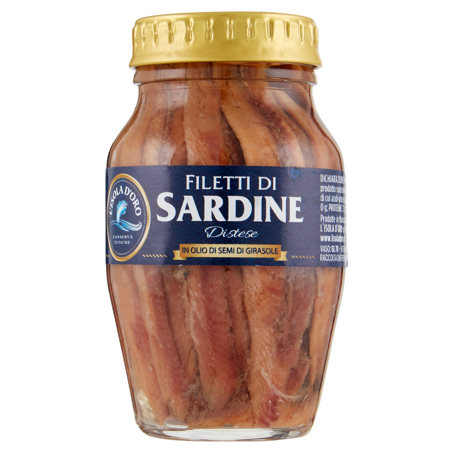 L'Isola d'Oro Filetti di Sardine Distese in Olio di Semi di Girasole 160 g