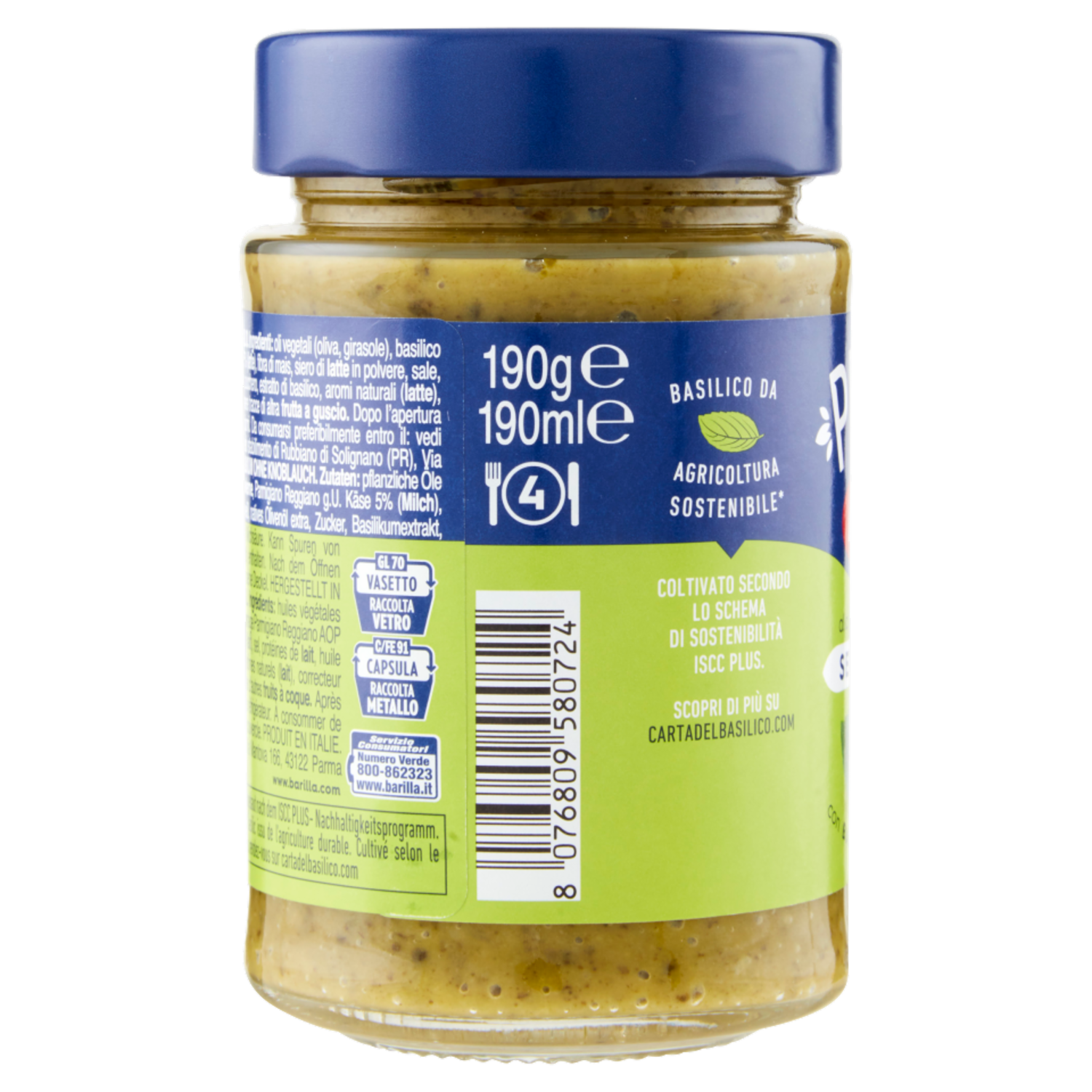 Barilla Pesto alla Genovese senza Aglio Condimento e Sugo per Pasta 190 g